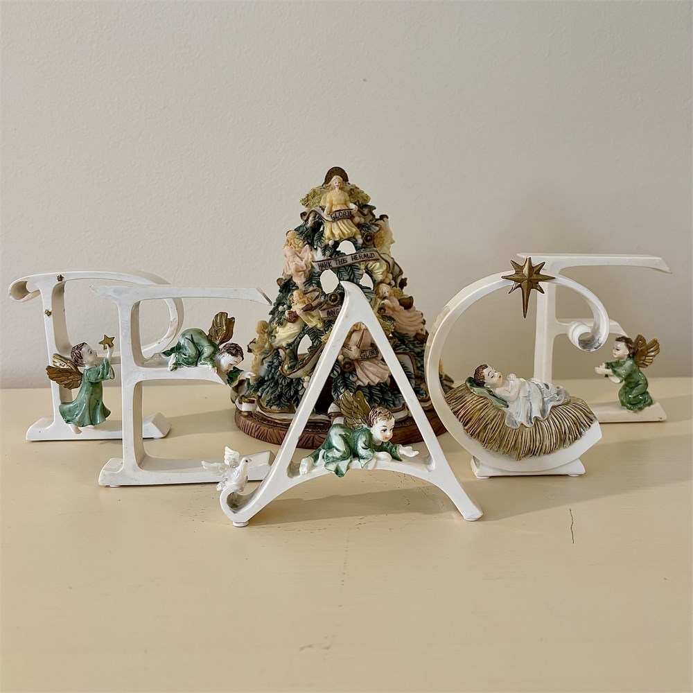 Vintage Silvestri Christmas Tree Votive Holder and PEACE Letters