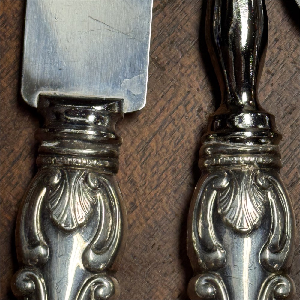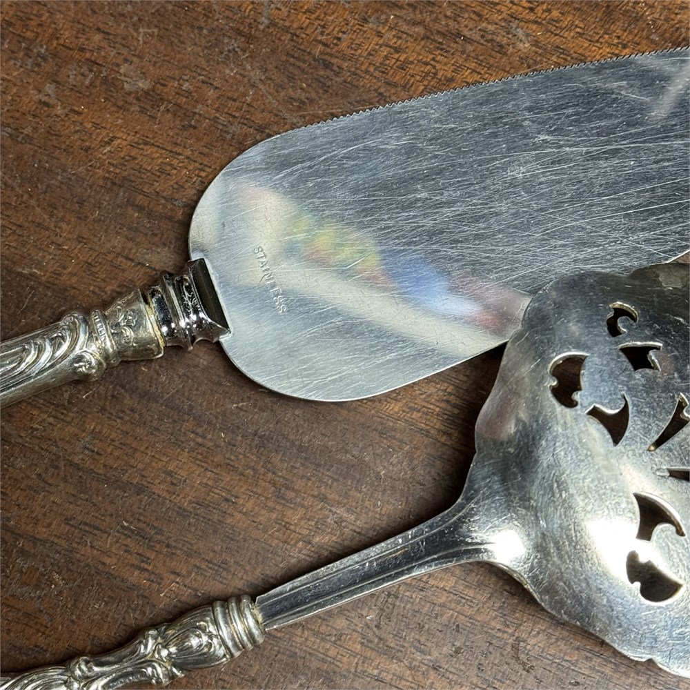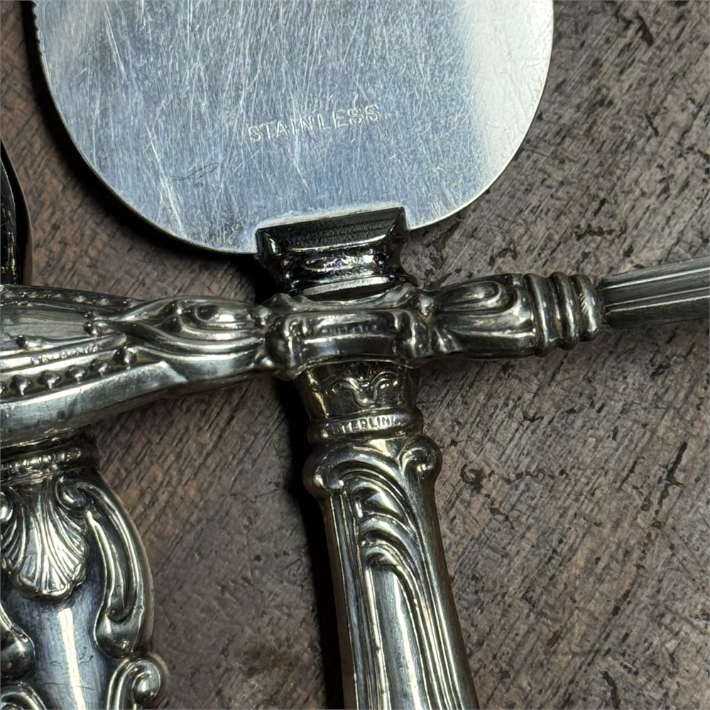 Sterling Silver Handled Serving Utensils -314.31 Total Weight in grams; weight Includes stainless components as well as any filler within the handle… use your judgement