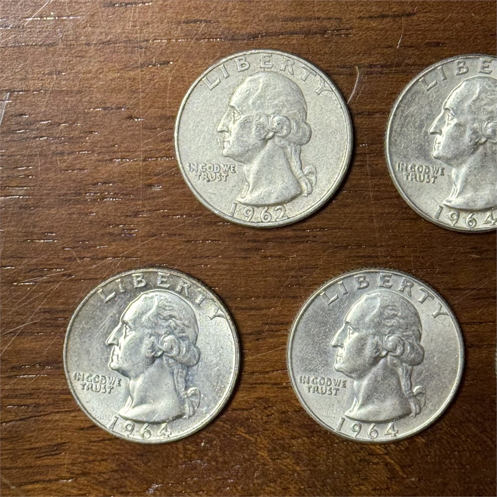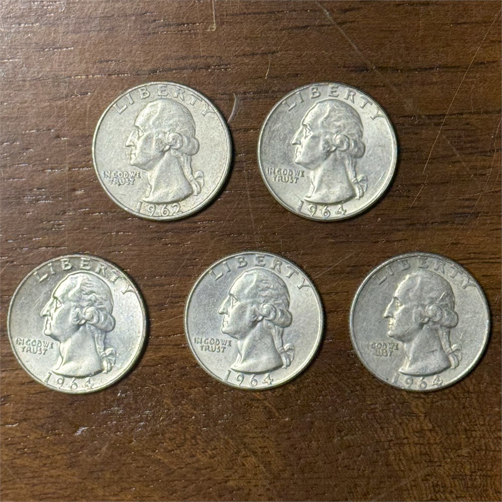 Lot of 5 Washington Silver Quarters 1962-1964 View Watchlist >
