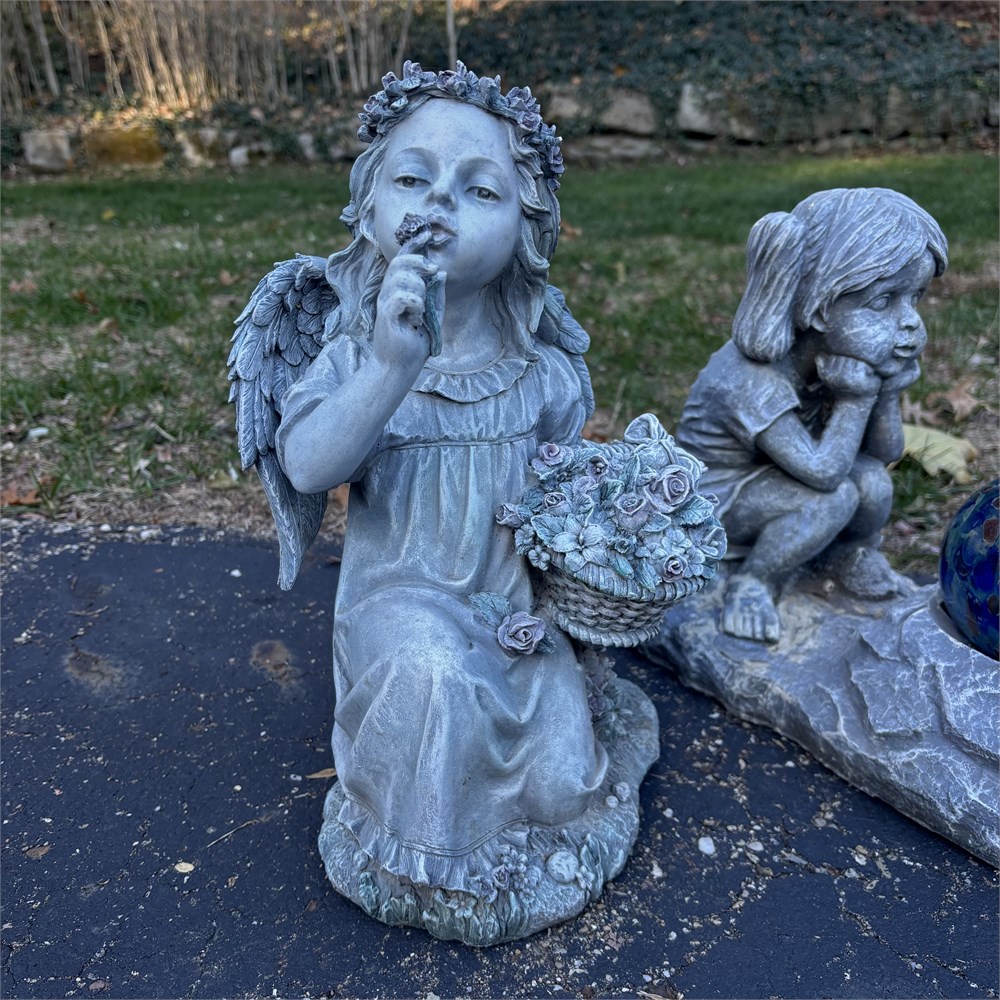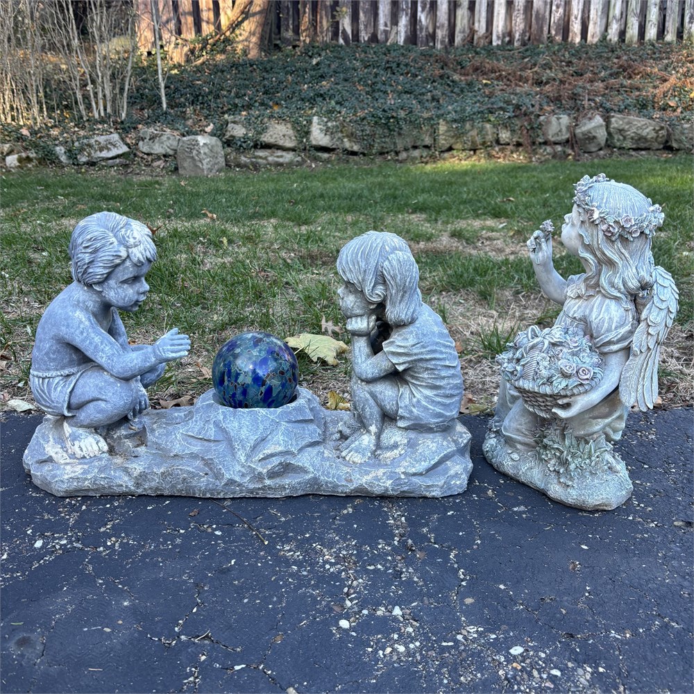Fairy Garden Outdoor Decor, One w/ Medium Gazing Ball Center