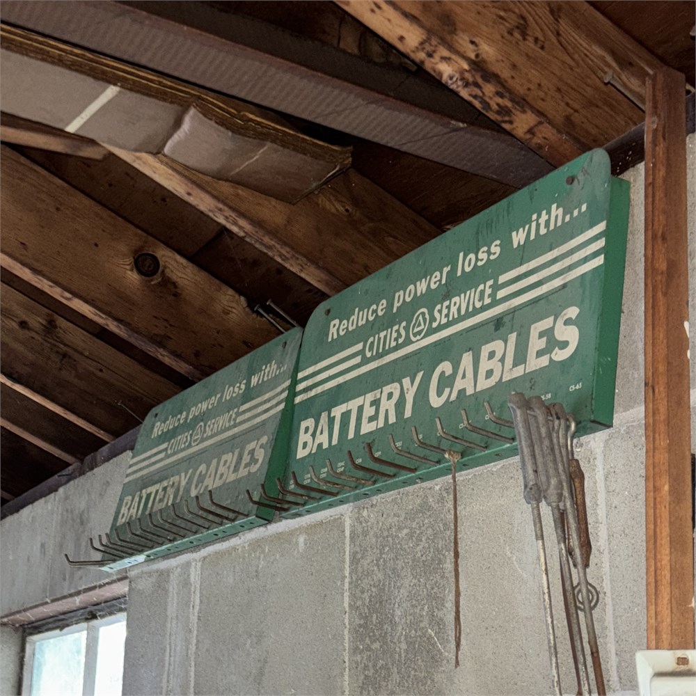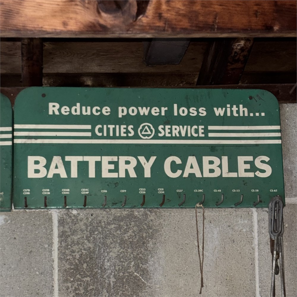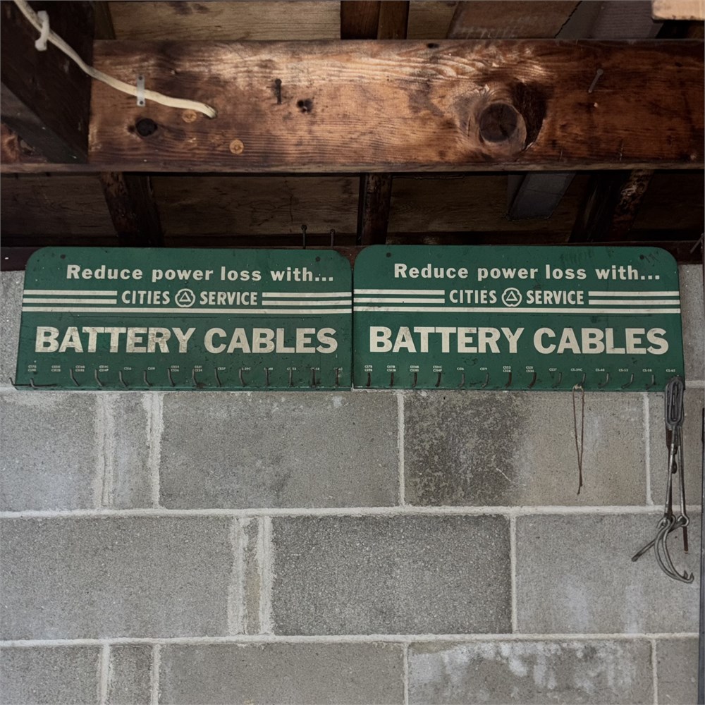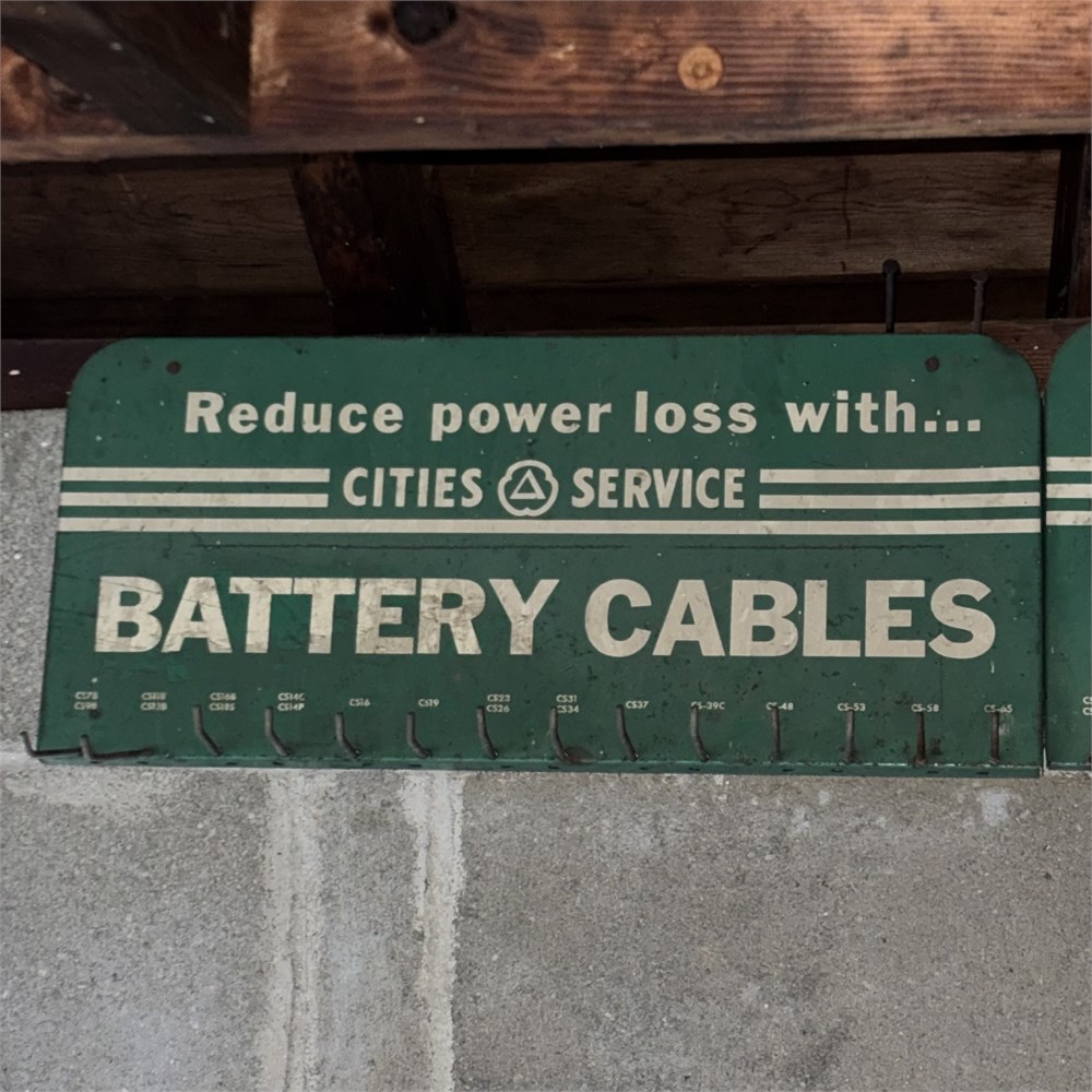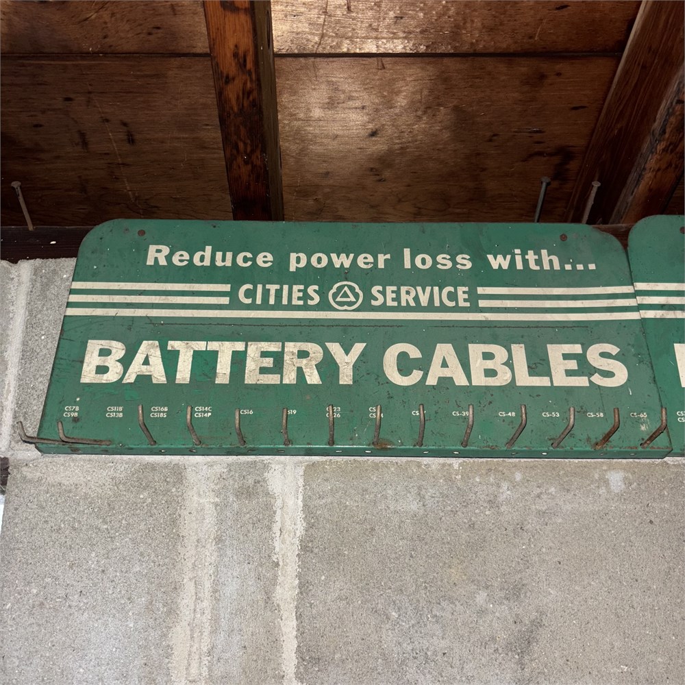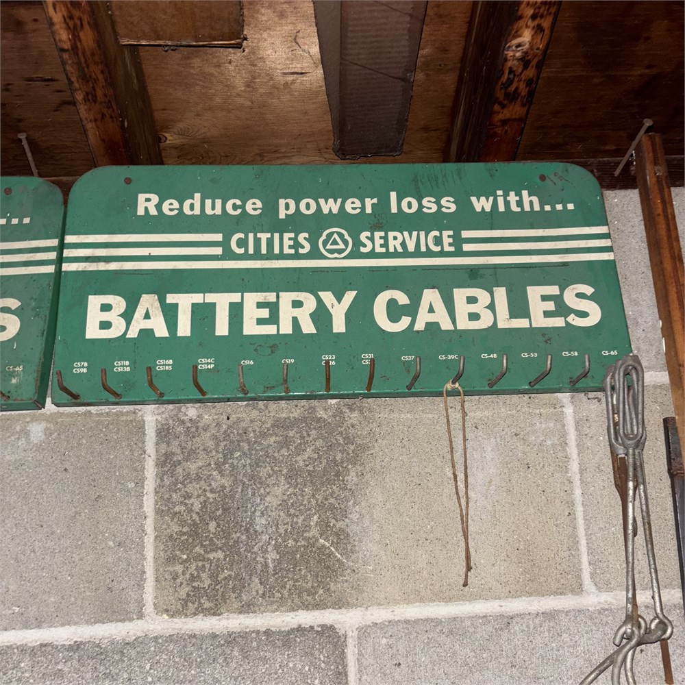 Vintage City Service Metal Advertising Battery Cables Signs w/ Cable Storage