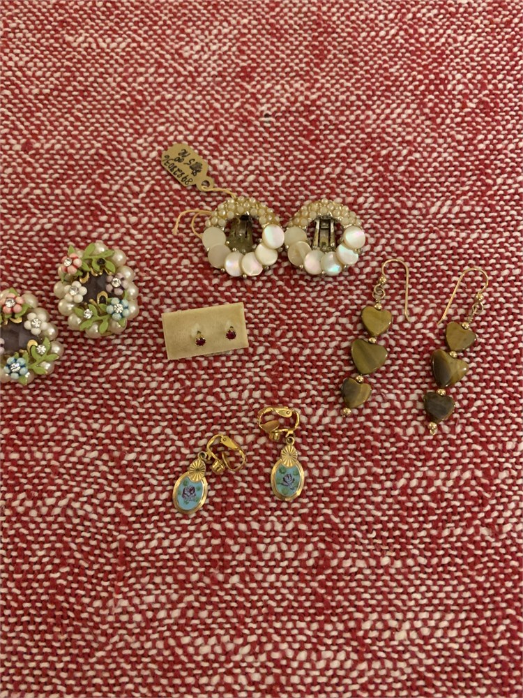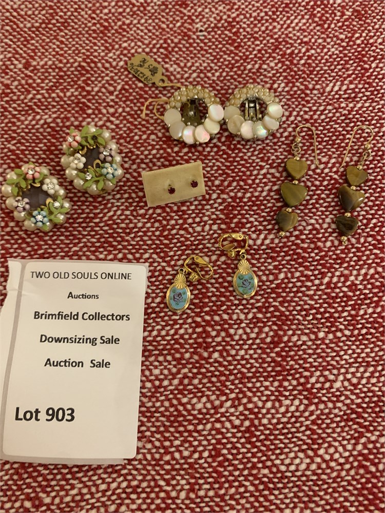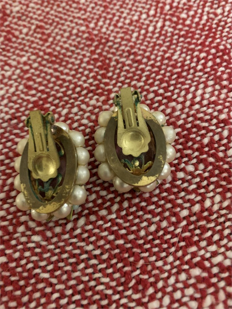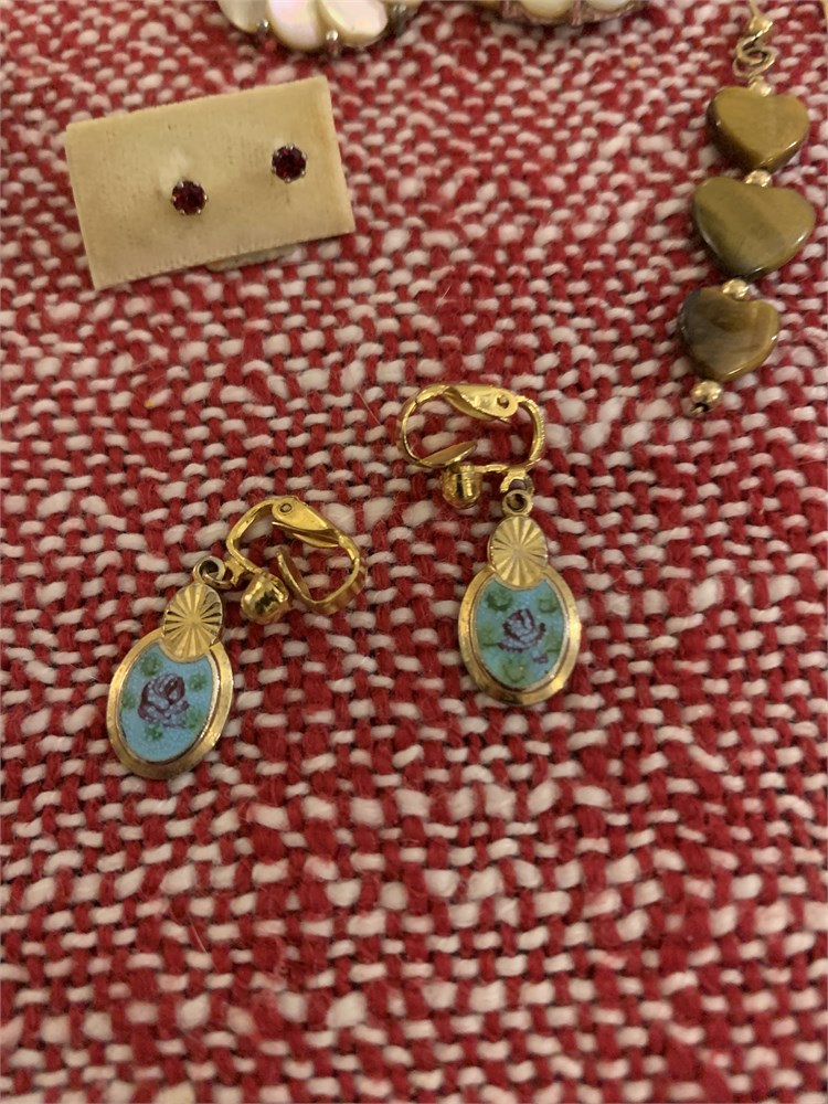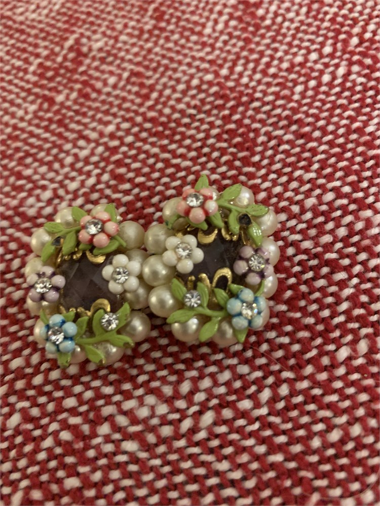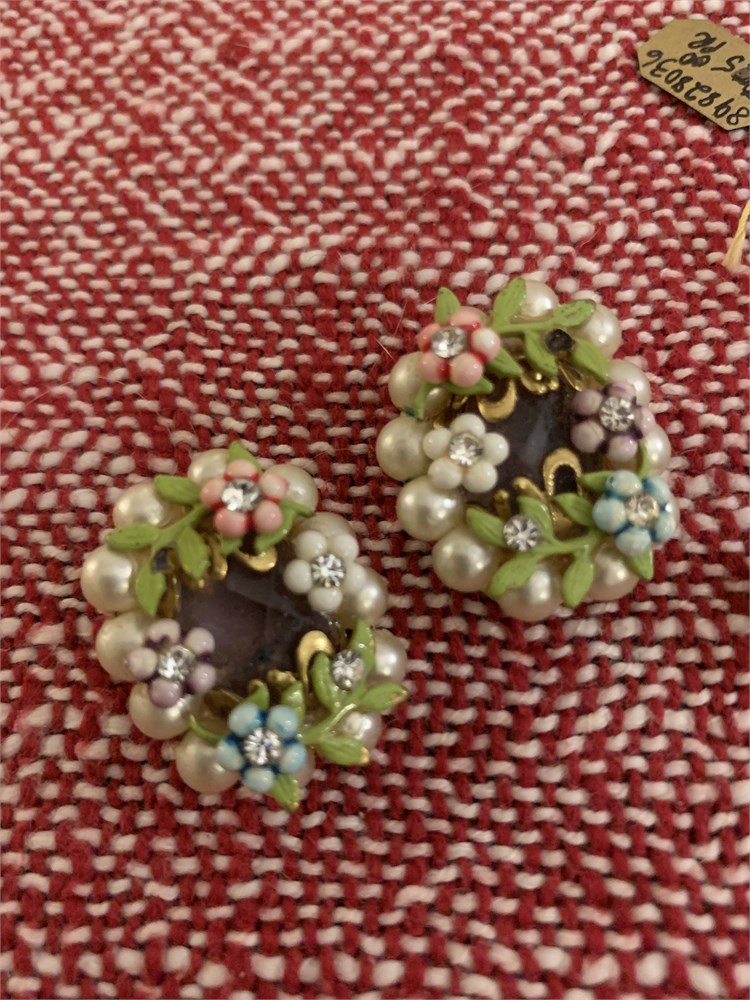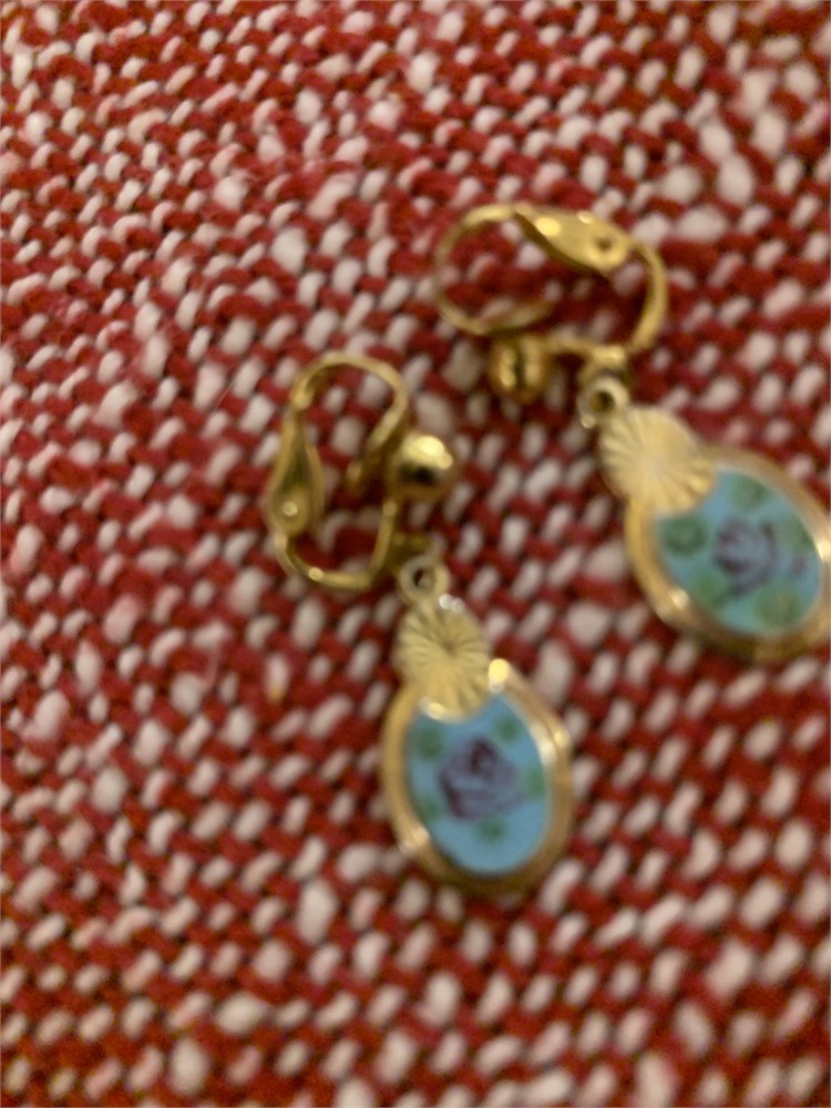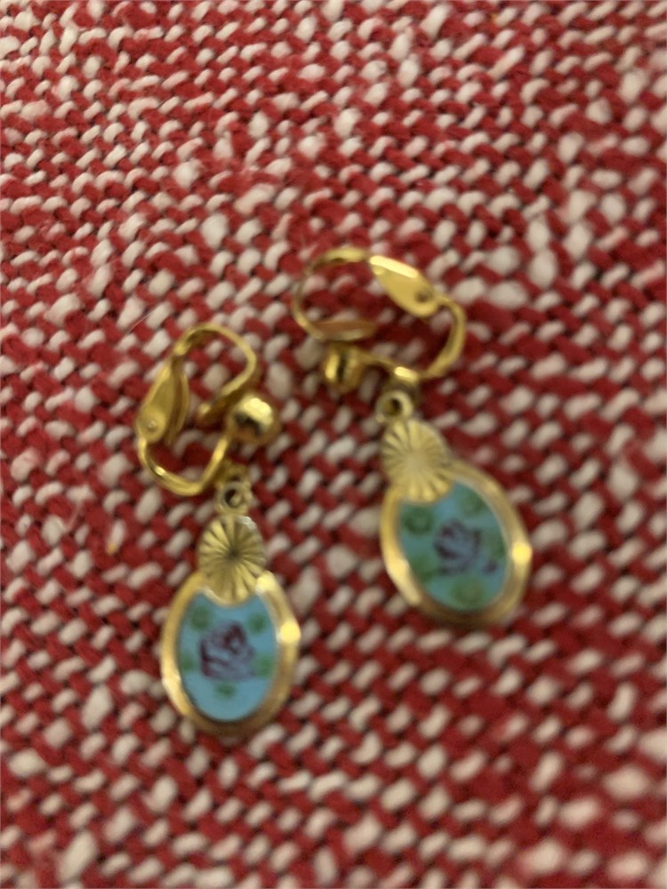 Gold-Toned Hand-Painted Enamel Floral Clip Earrings, Enamel Floral Clip Ons View Watchlist >