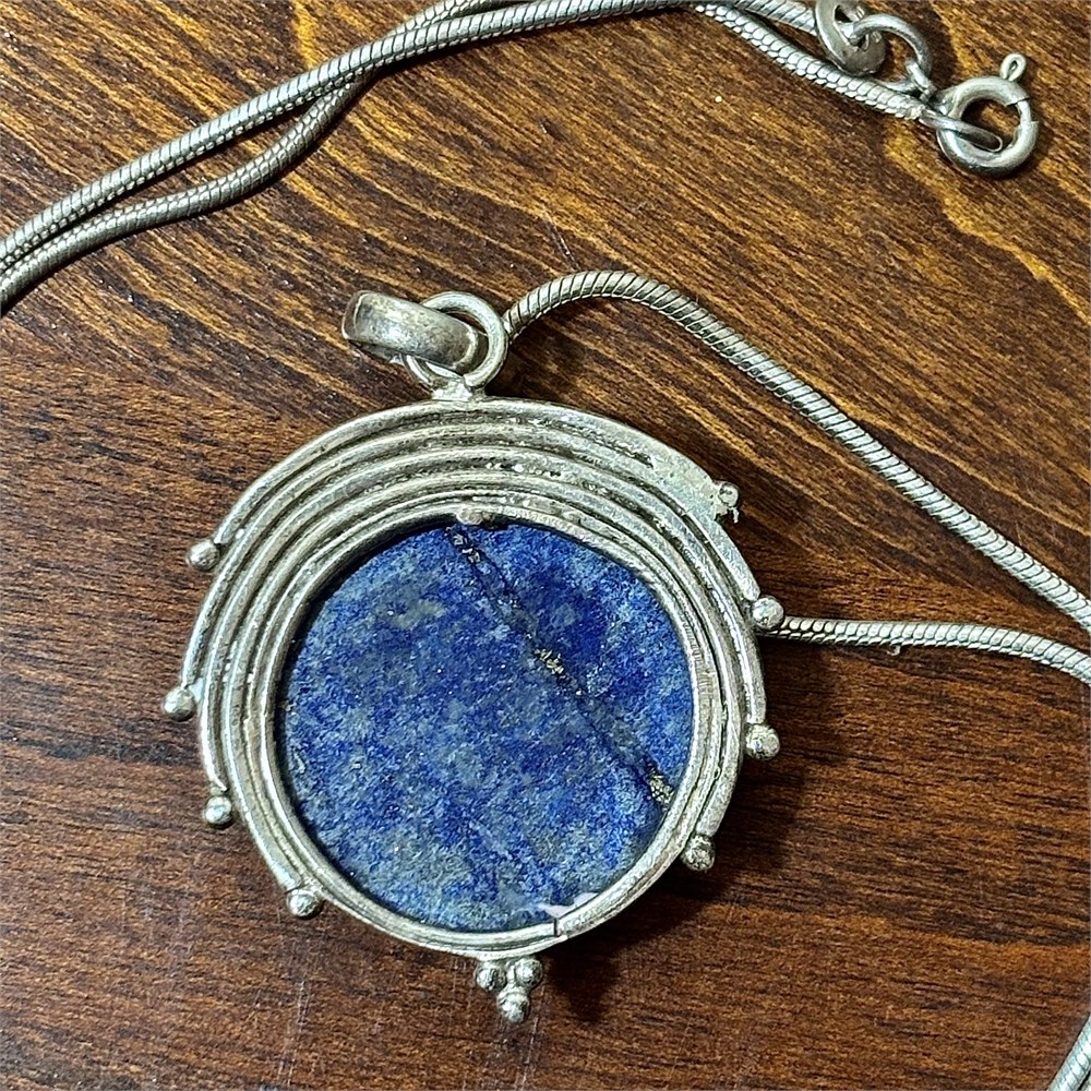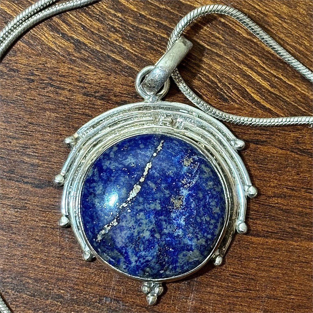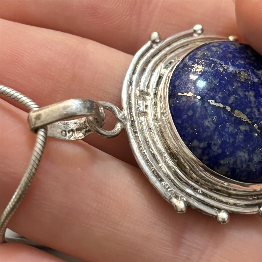 Vintage Lapis Lazuli Sterling Silver Pendant Necklace View Watchlist >