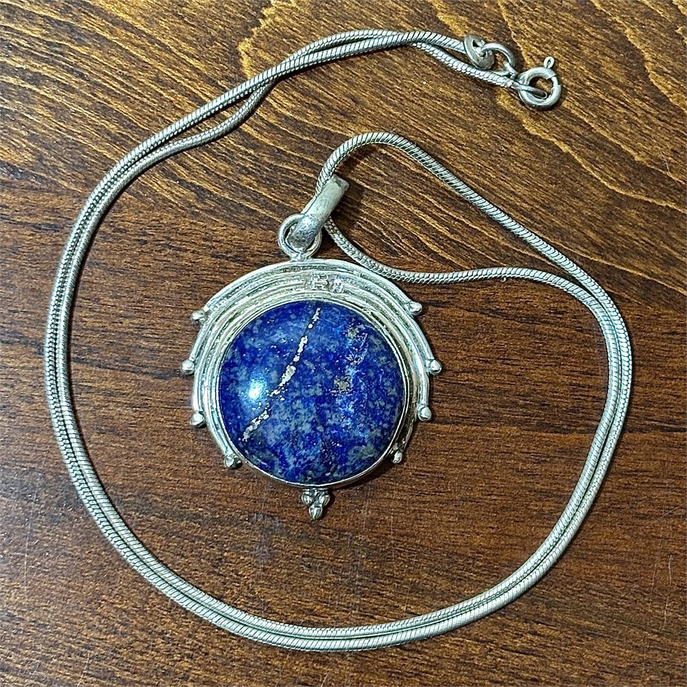 Vintage Lapis Lazuli Sterling Silver Pendant Necklace