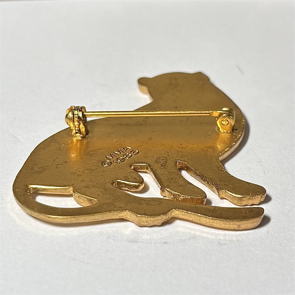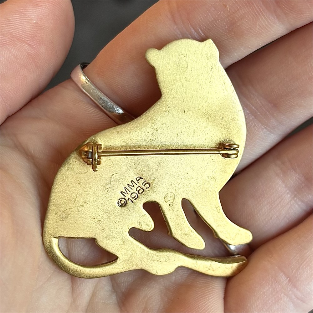 MMA Signed Leopard Gold Tone Brooch, 2"H
