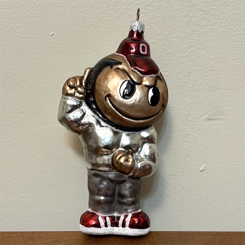 Brutus Buckeye Blown Glass Christmas Ornament - 6"