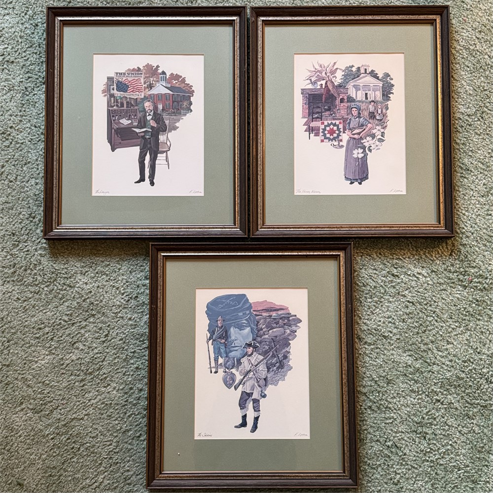K. Lipstren Pencil Signed Framed Art Prints, Lot of 3 - 15 x 18"