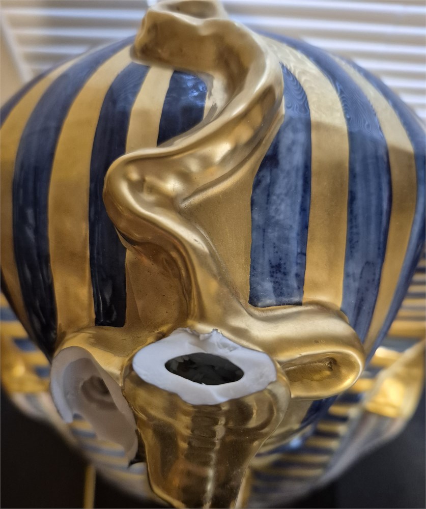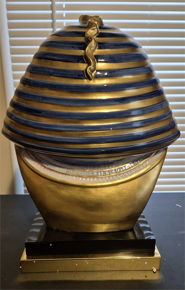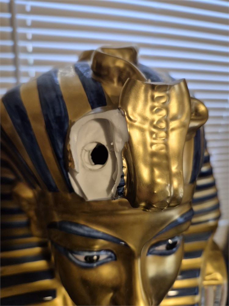 King tut mask has damaged and broken pieces, sold as is
