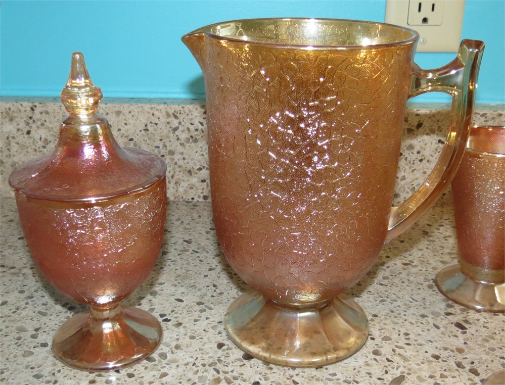 Jeannette Marigold Carnival Glass Pitcher Set View Watchlist >