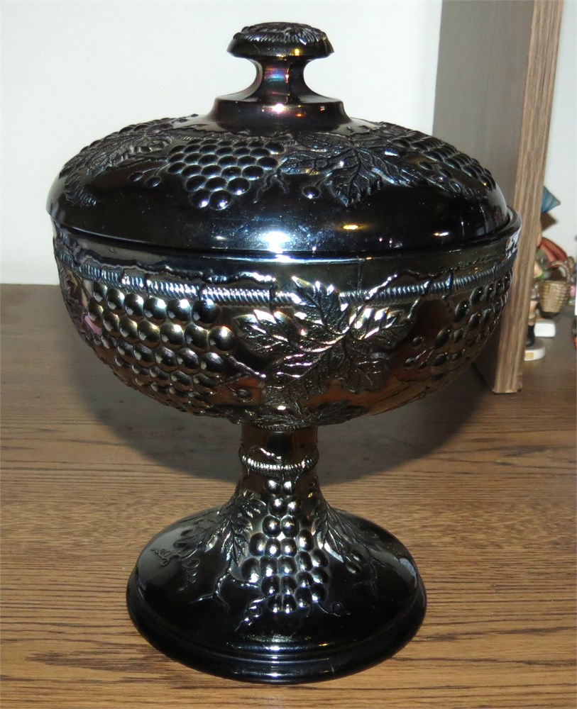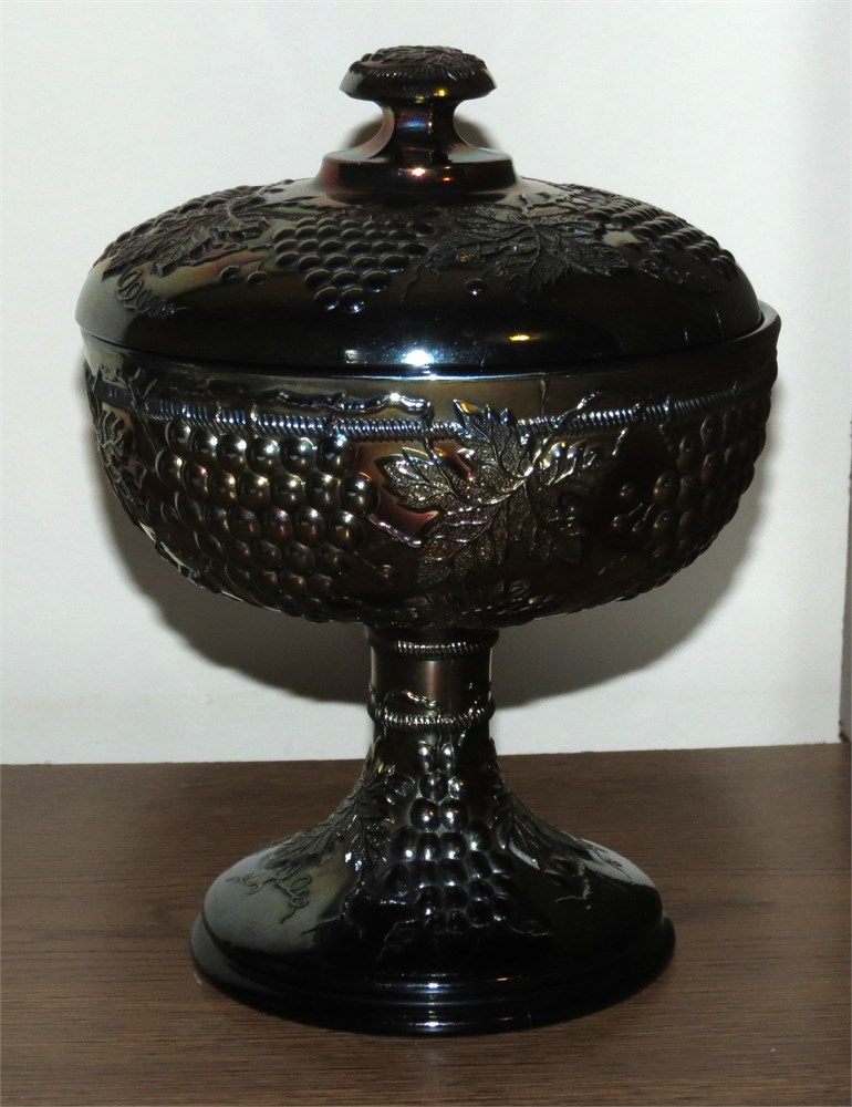 Northwood Amethyst Carnival Glass "Grape & Cable" Lidded Compote View Watchlist >