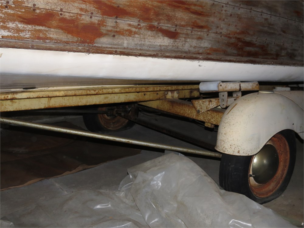 Has 3 titles. The tires on the trailer are flat, there is no electric in the garage its in, so would need a portable air compressor to inflate the tires. alternate pickup arrangements can probably be made to remove the garage.