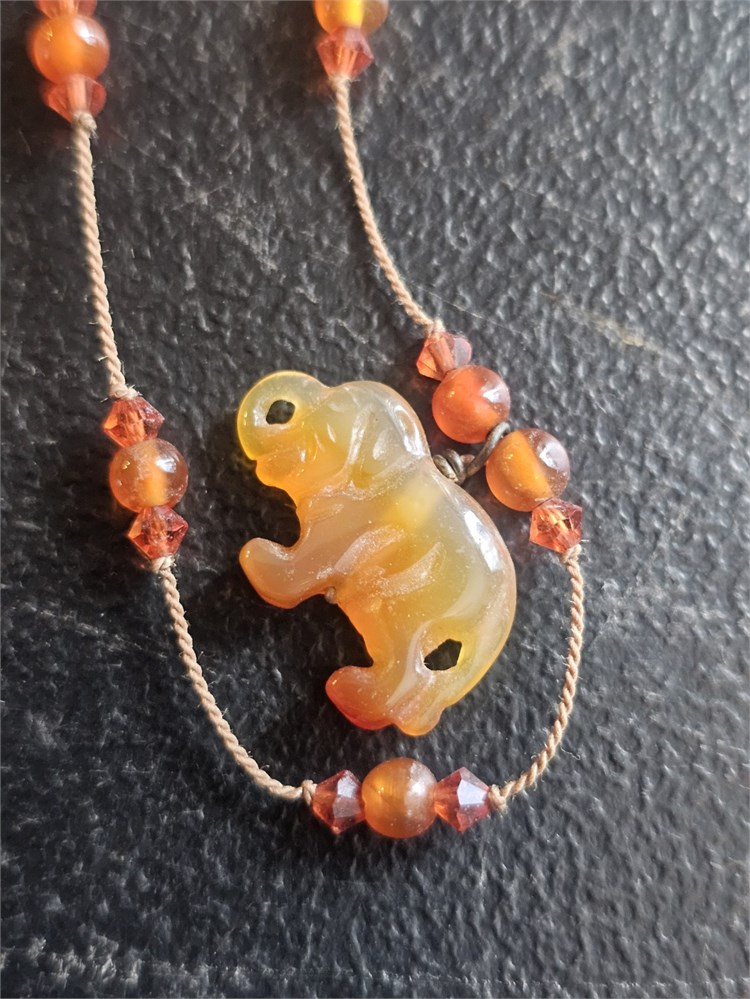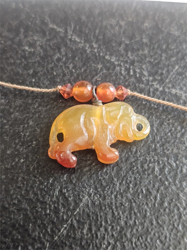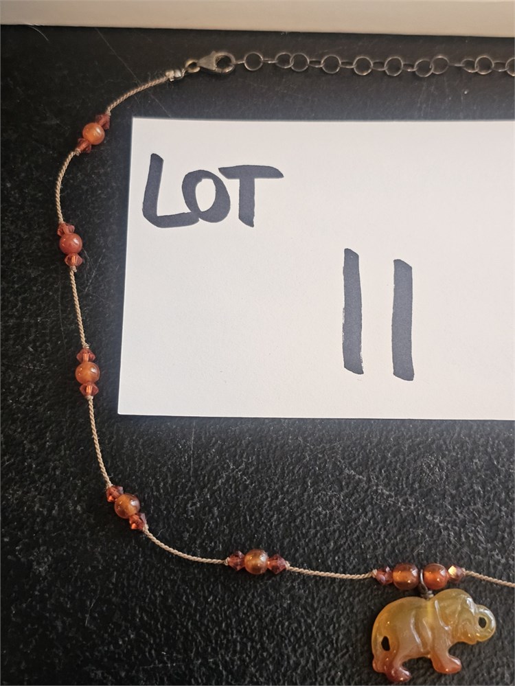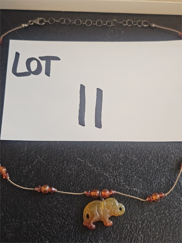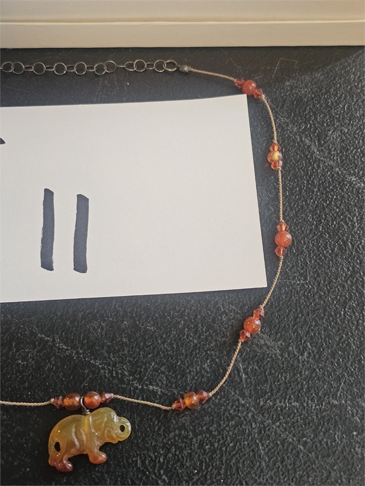 Sterling Amber Jade Elephant Necklace 18"L View Watchlist >