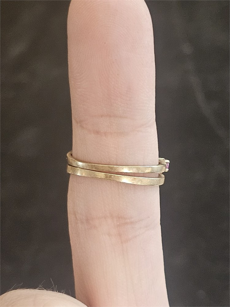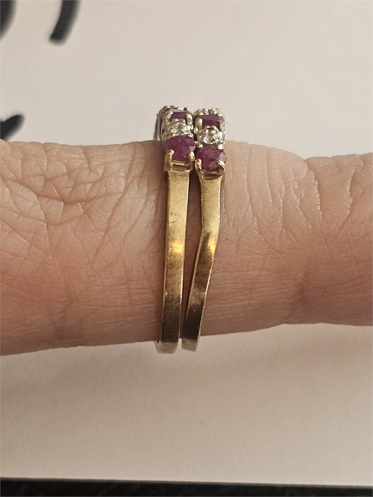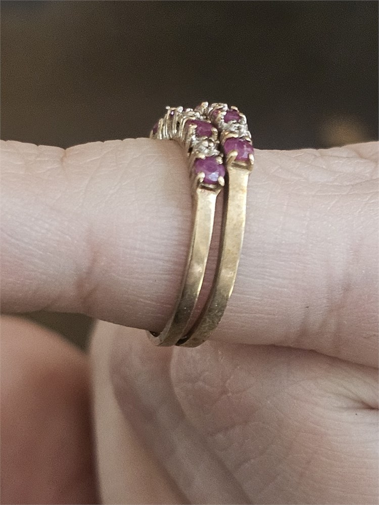 10K Ruby & Diamond Double Band Ring Size 7 1.5 DWT