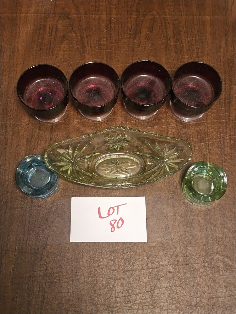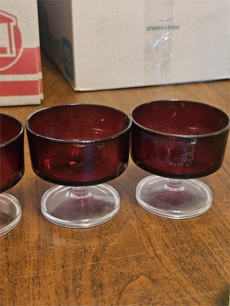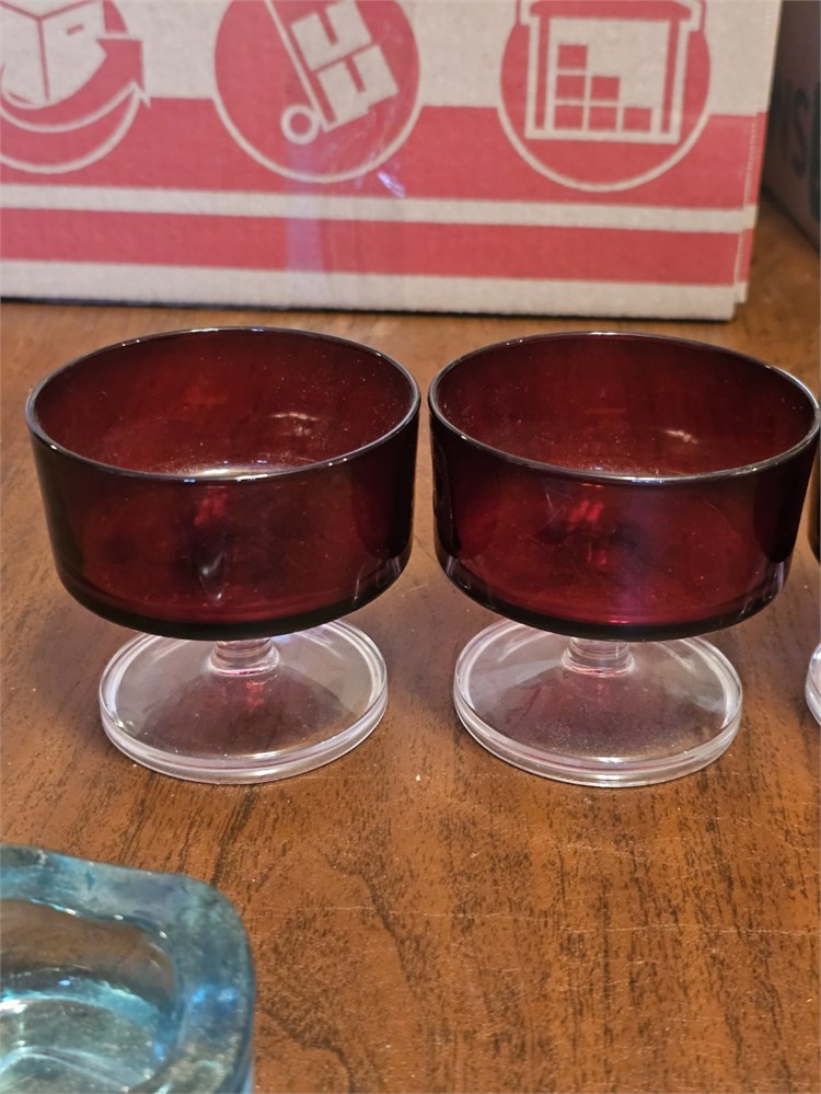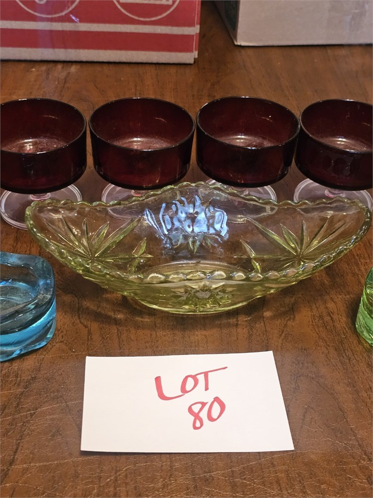 Arcoroc Luminarc Cavalier Ruby Glass Sherberts, Anchor Hocking Green Banana Boat Bowl & More