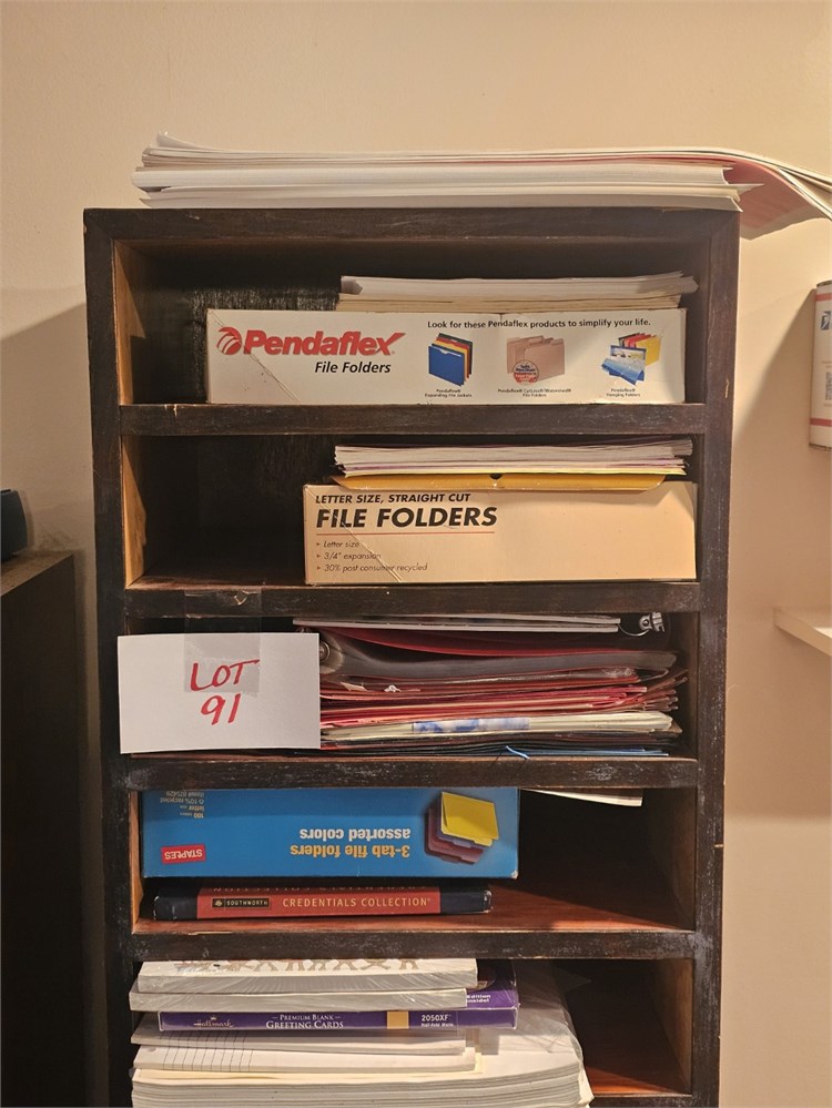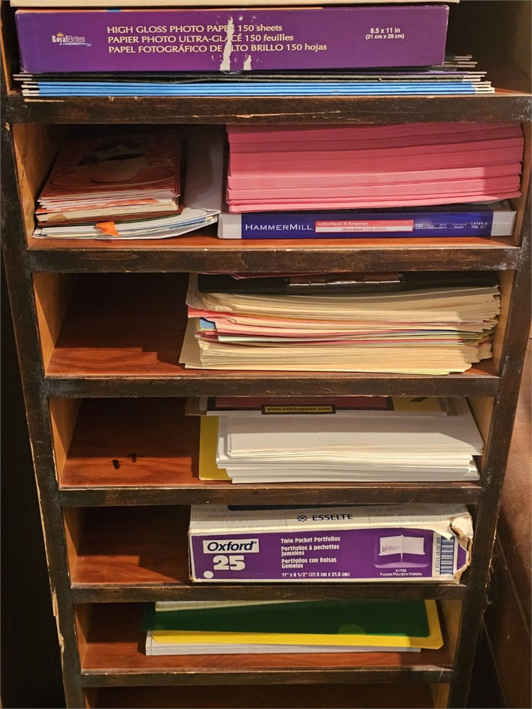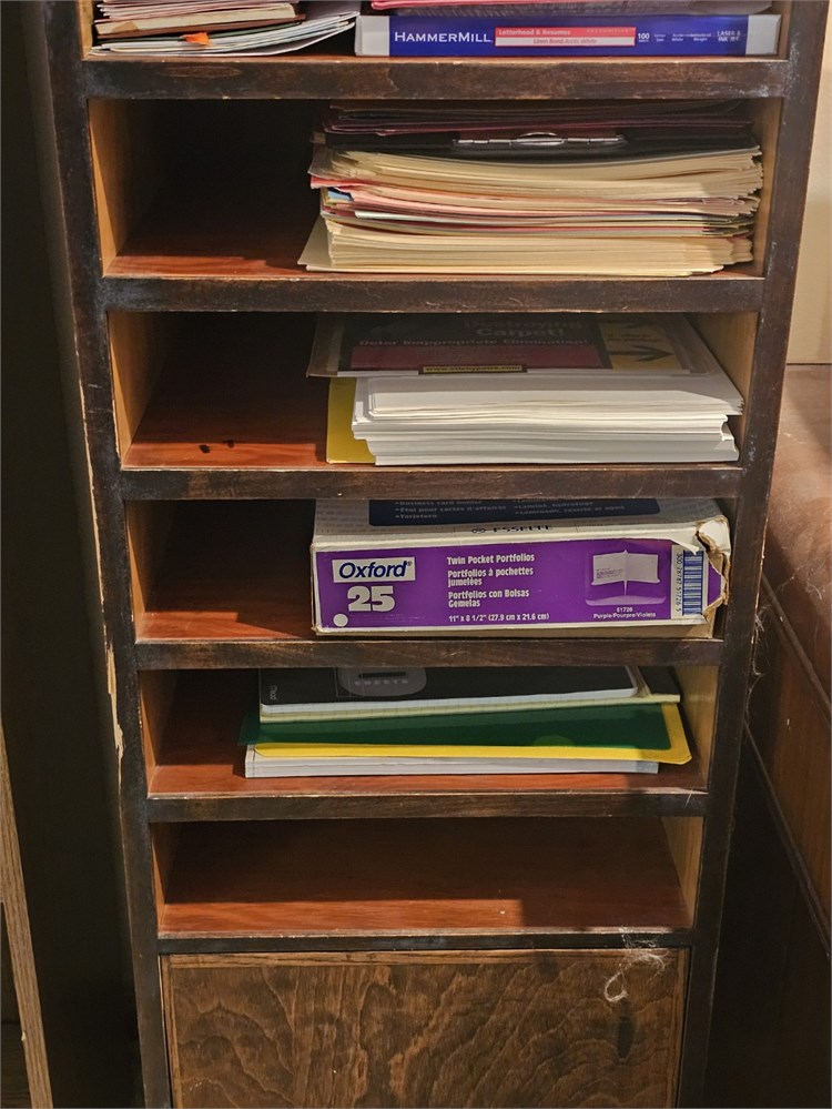 Wood Storage Shelf With Mixed Office Paper