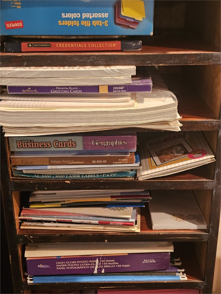 Wood Storage Shelf With Mixed Office Paper View Watchlist >