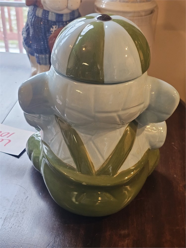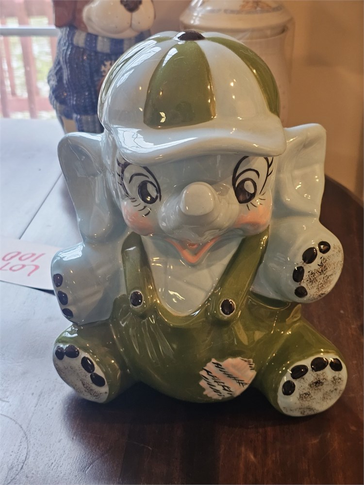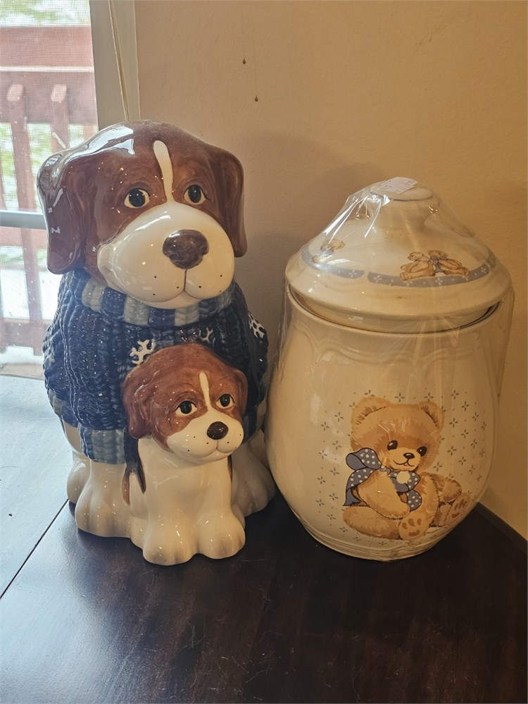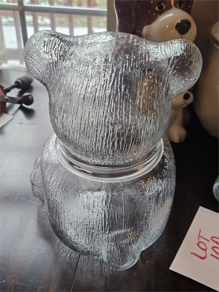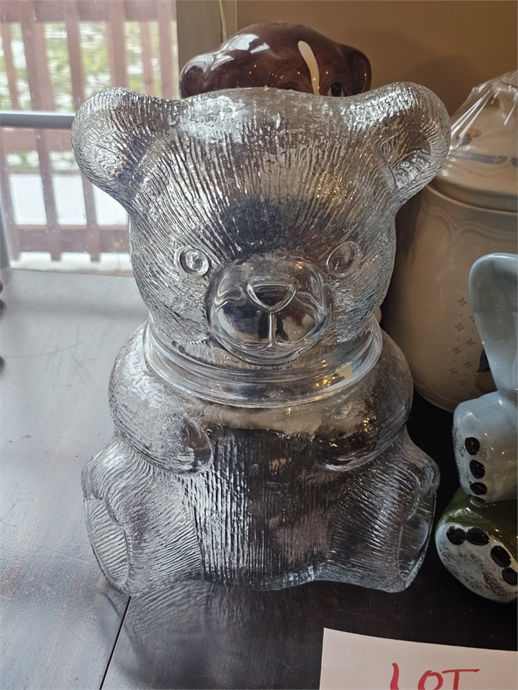 Mixed Cookie Jar Lot- Ceramic Elephant, Clear Glass Bear, Mercuries Dog Jar View Watchlist >