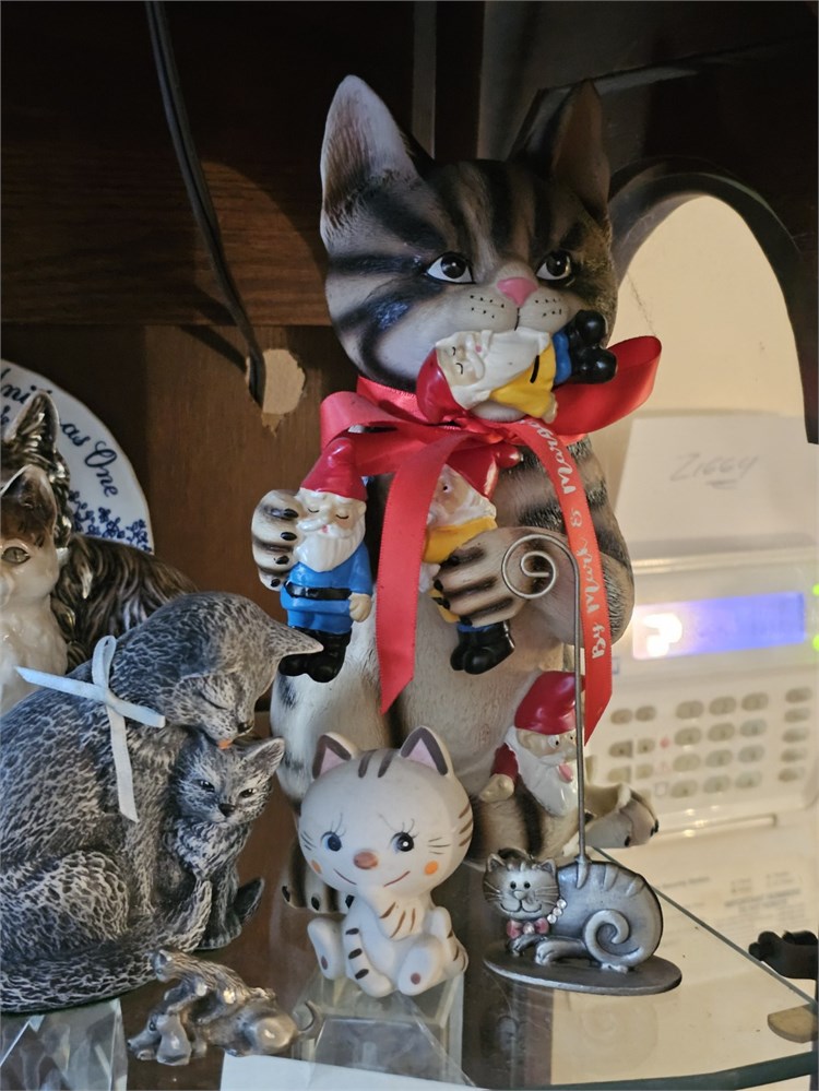 Mixed Feline Related Lot- Cat Figurines, Card Holders, Music Box & More View Watchlist >