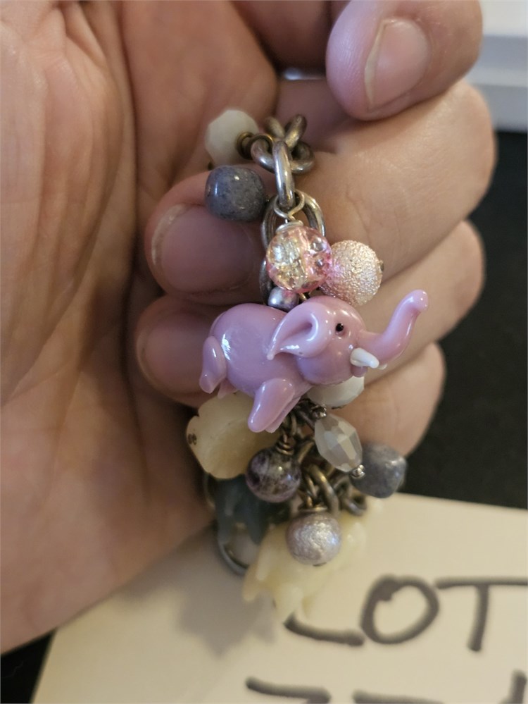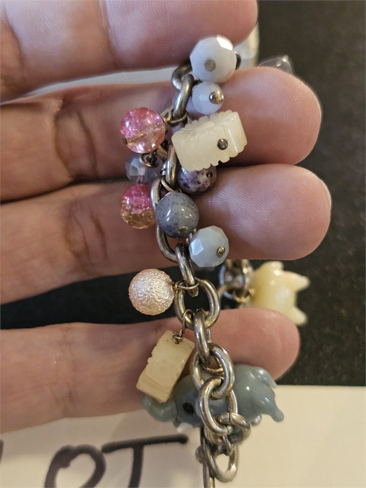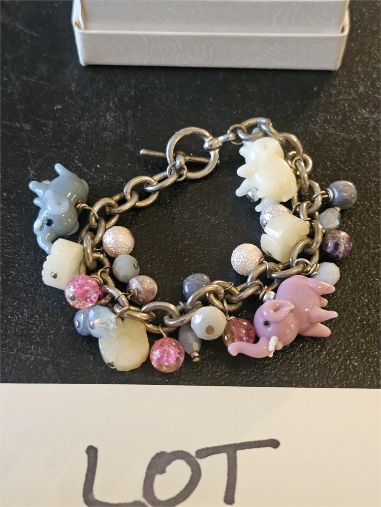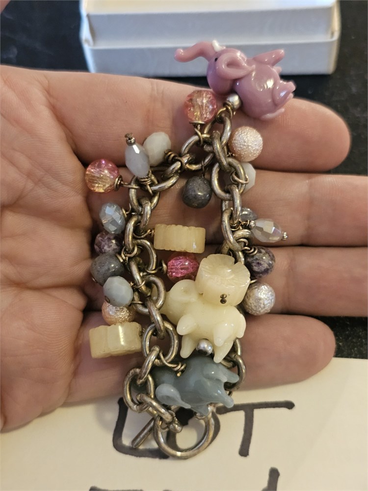 Mixed Carved Glass Elephant & Bead Charm Bracelet View Watchlist >