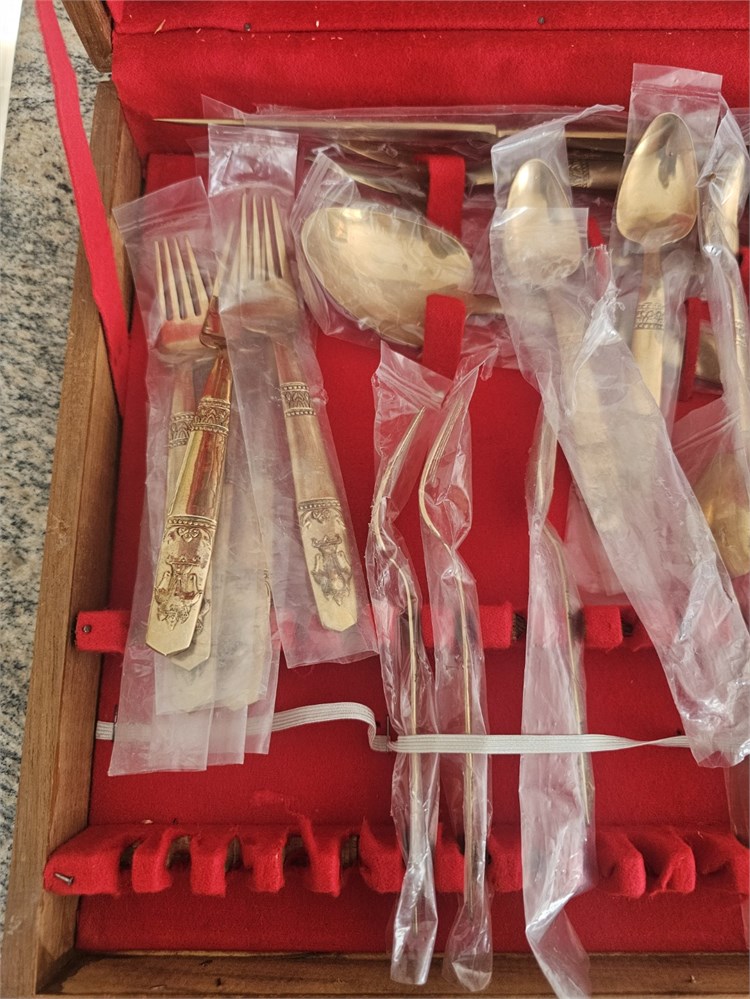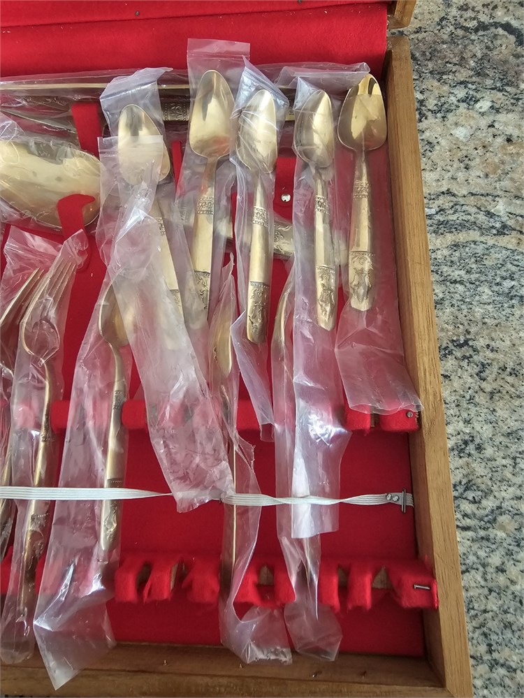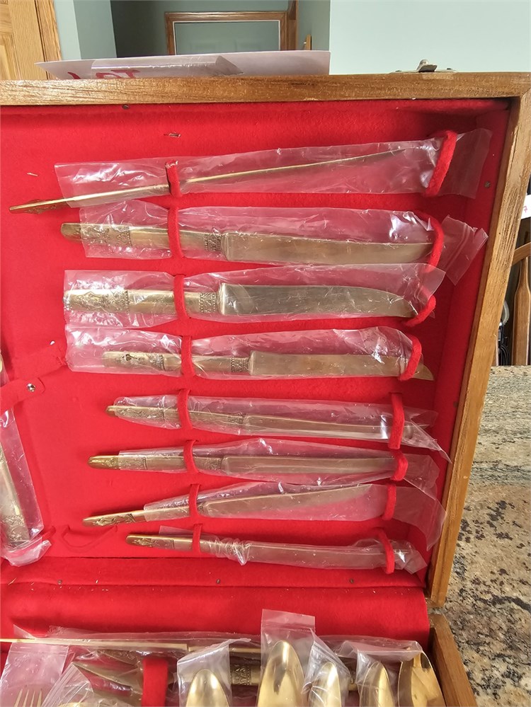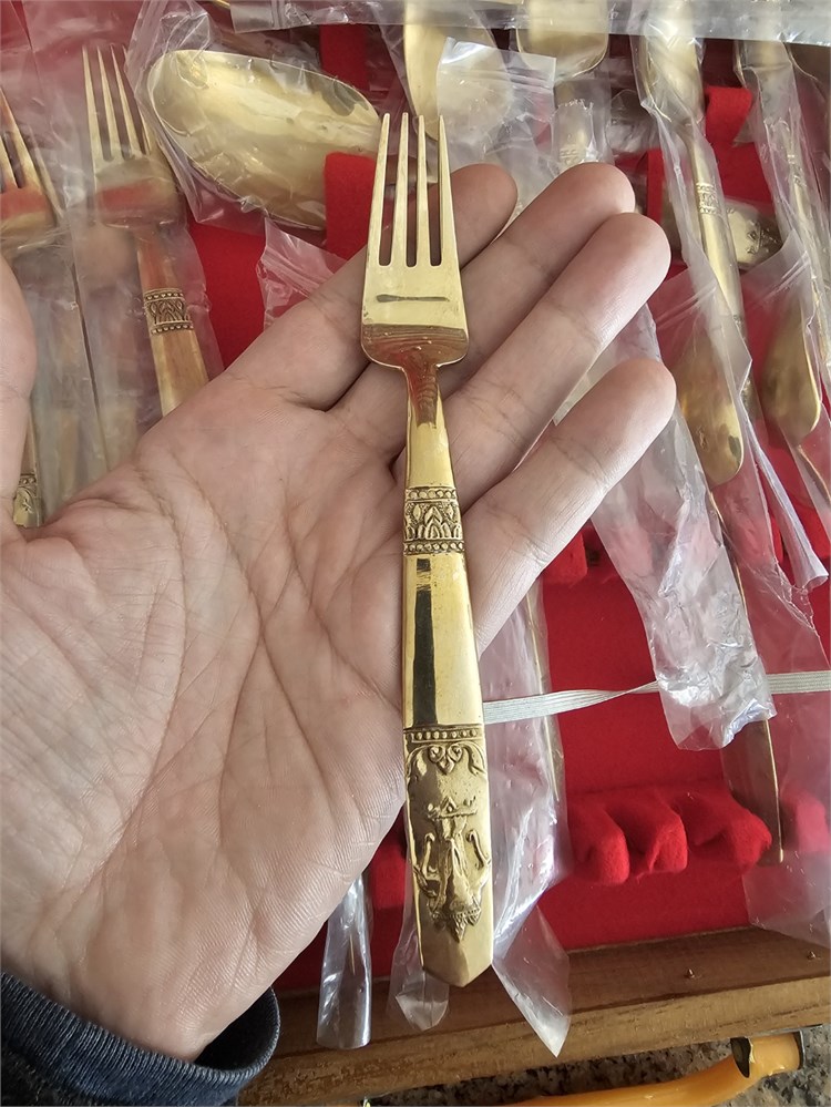 Brass Flatware Set Siam Design In Box Service For 8 View Watchlist >