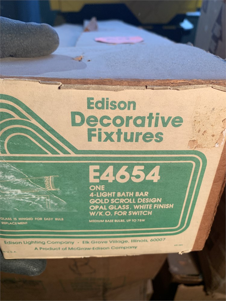 Edison Decorative Fixtures 4 Light Opal Bath Bar Fixture W/Gold Scroll Design View Watchlist >