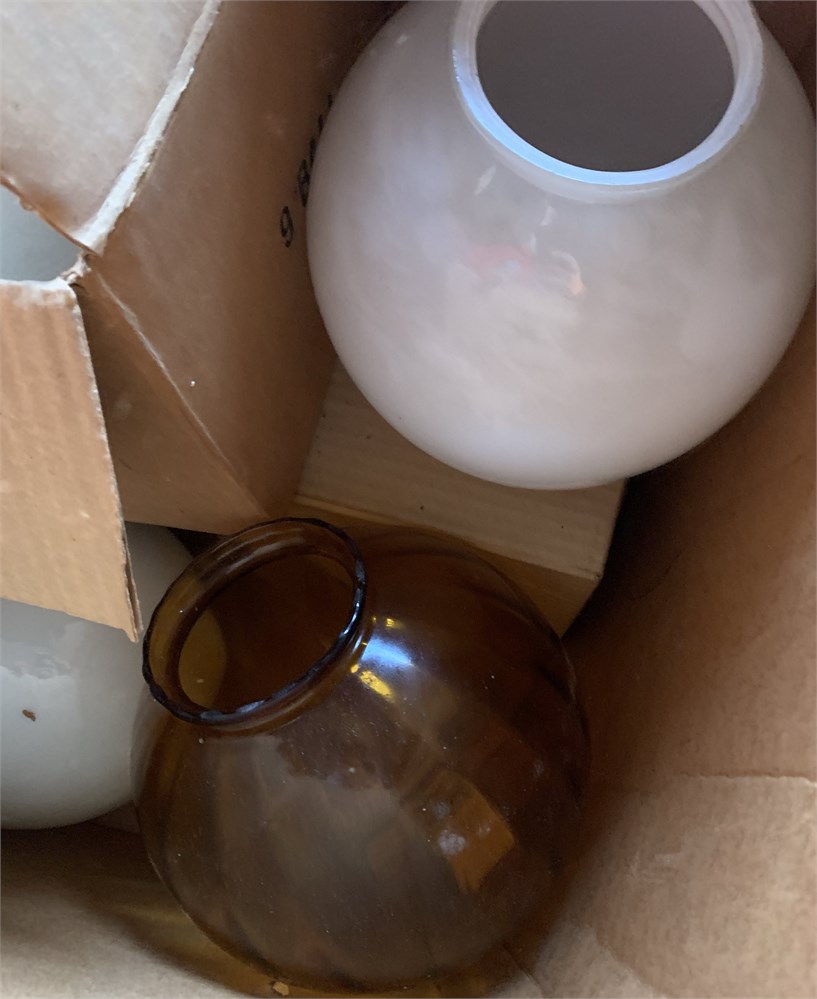 Vintage Hand-Blown Amber Glass Lamp Globes & Milk Glass Globe Lot View Watchlist >