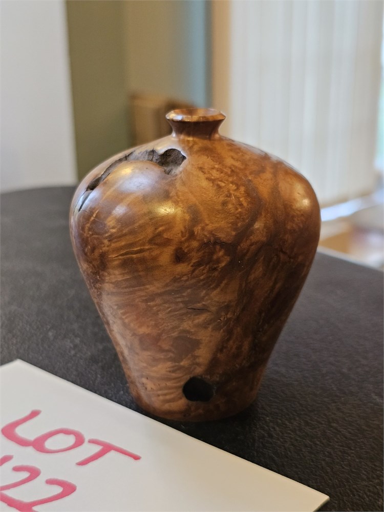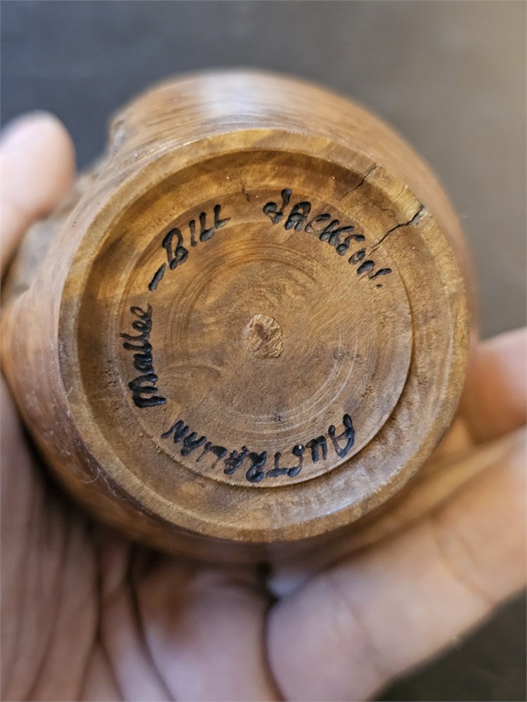 Bill Jackson Signed Mallee Root Burl Hand Turned Wood Vessel Measuring 3"H View Watchlist >