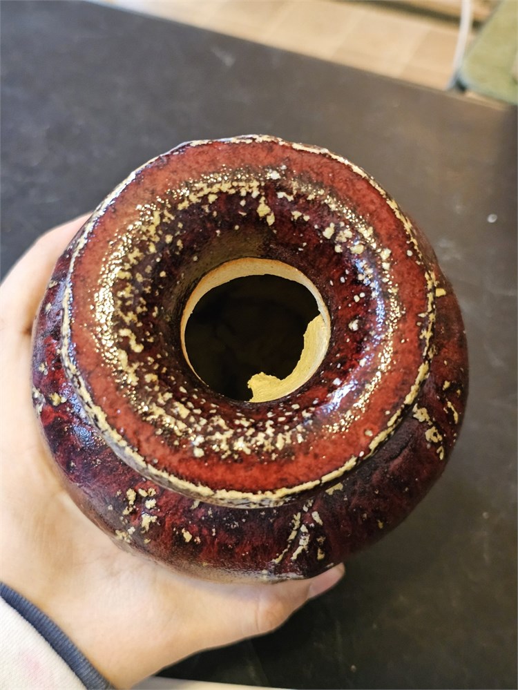 Antique Half Glaze Thick Stoneware Vase Top Features Glossy Deep Oxblood Glaze View Watchlist >