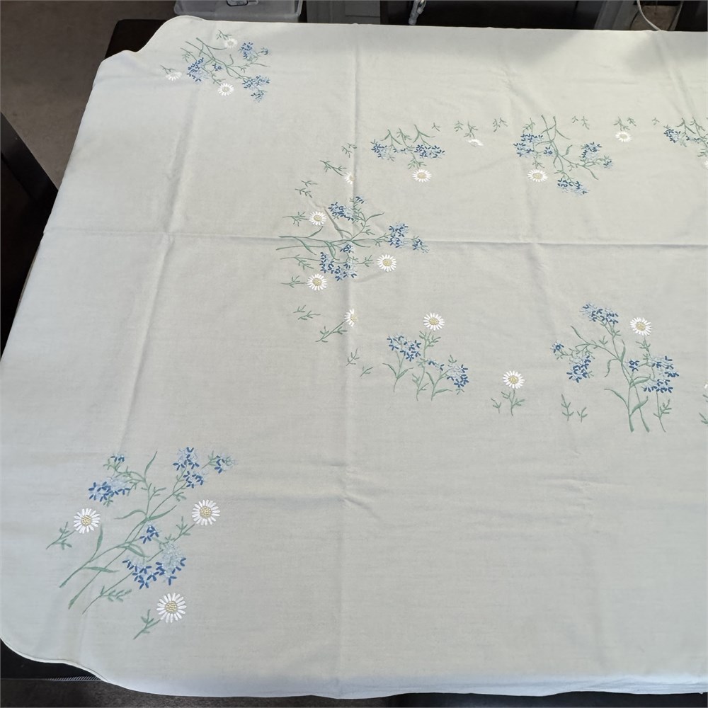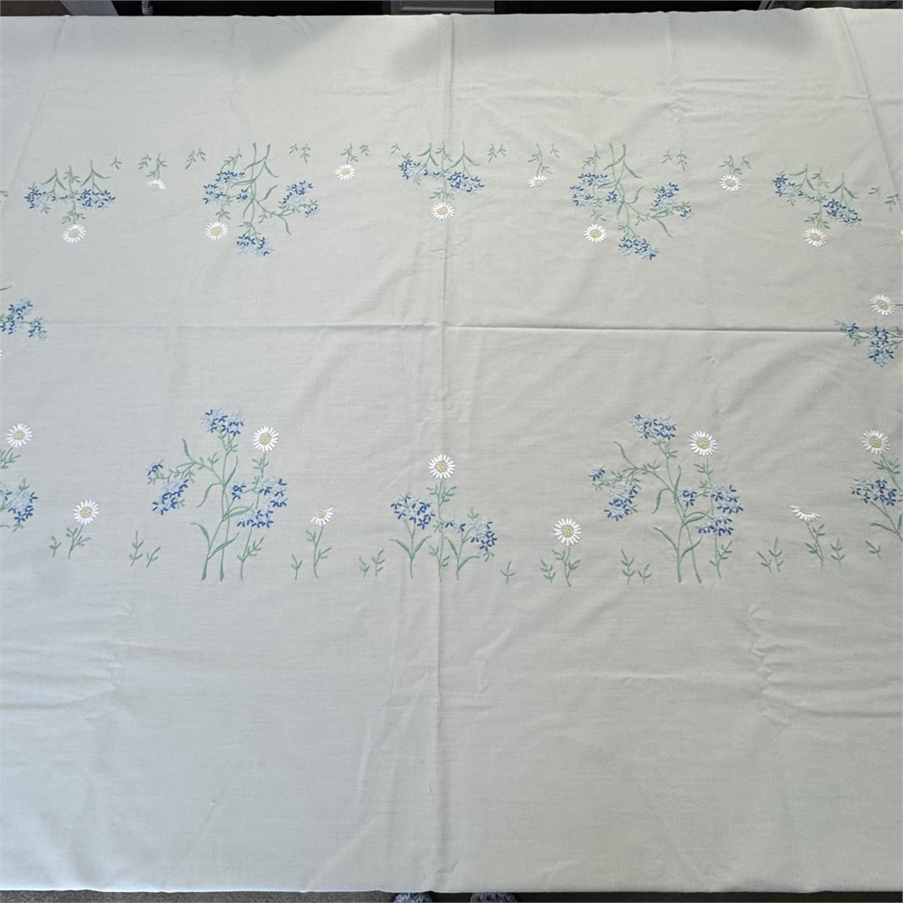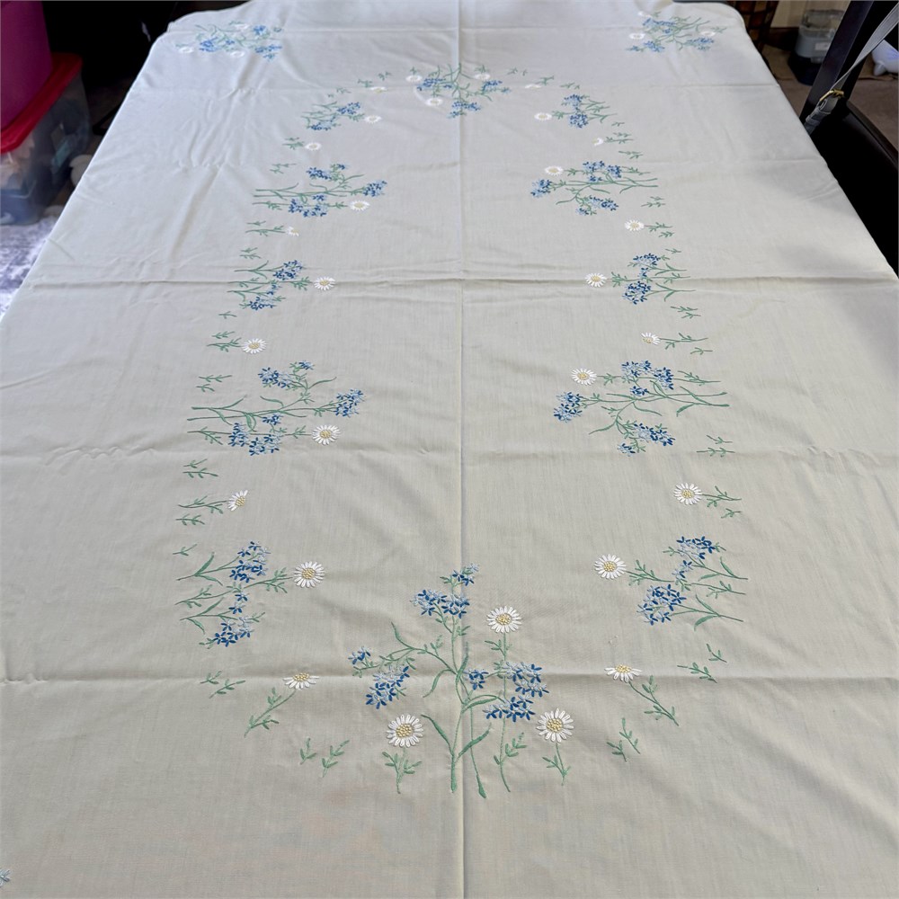 VTG Floral Hand Embroidered Scalloped Edge Tablecloth - 86" x 58" View Watchlist >