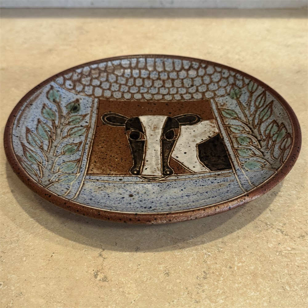 Signed David Stewart Art Pottery Cow Motif Plate, 10 1/8" View Watchlist >