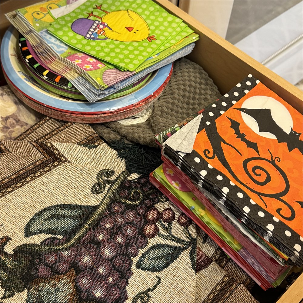 Kitchen Linens Large Drawer Cleanout - Table Linens, Vintage Paper Napkins, Etc. View Watchlist >