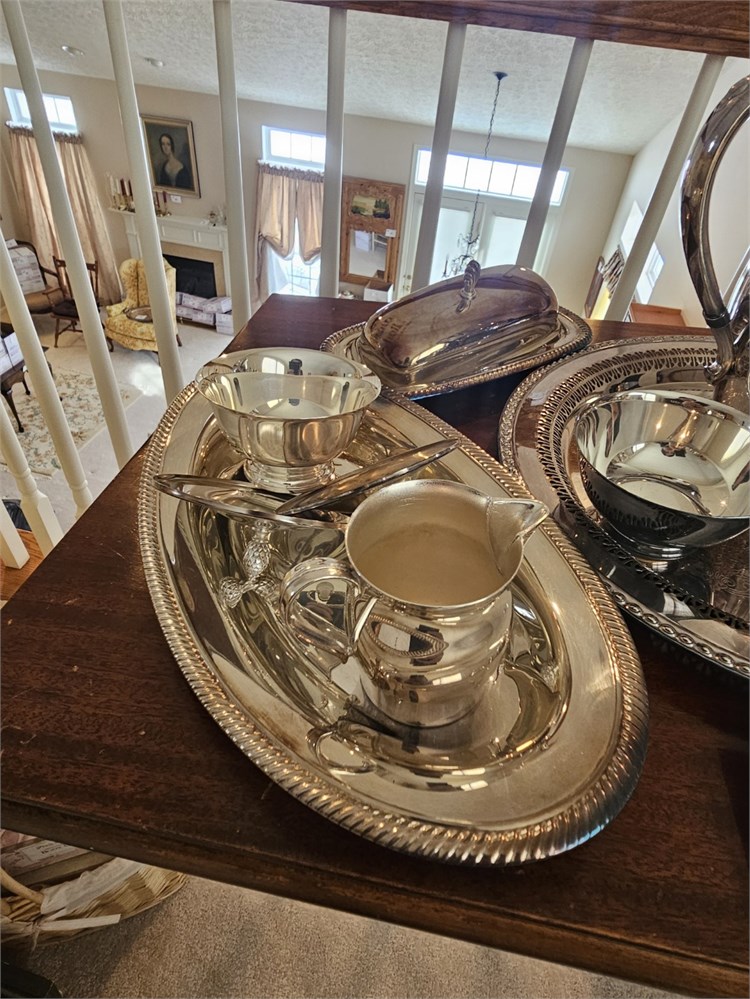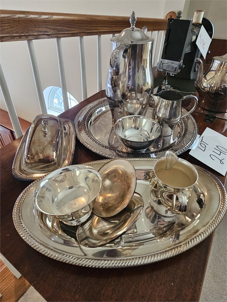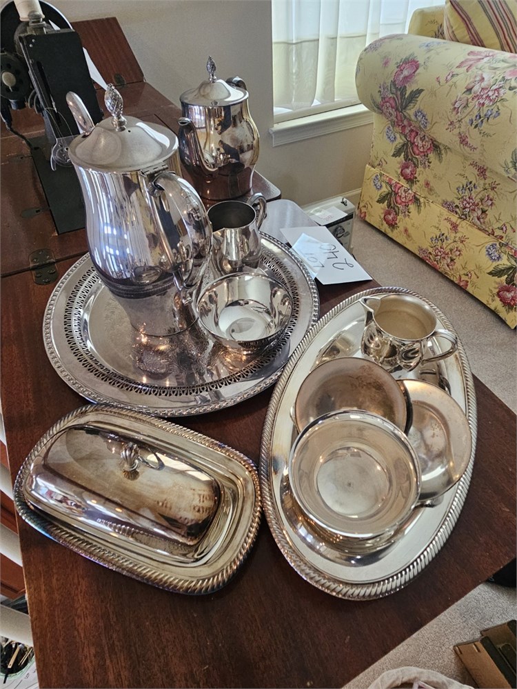 Mixed Plated Coffee & Tea Pot, Creamer / Sugar, Trays & More