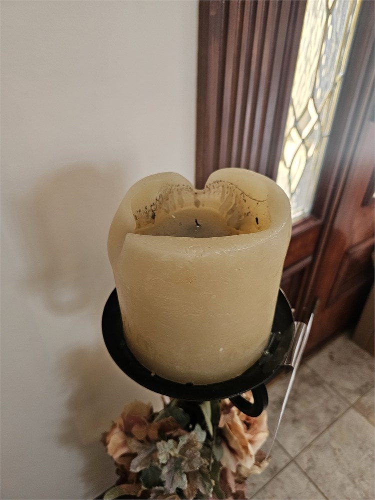 Metal 3-Wick Candle Holder – 36"H with Shades of Pink Faux Flowers
