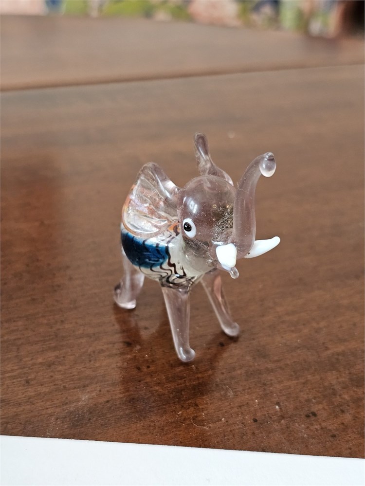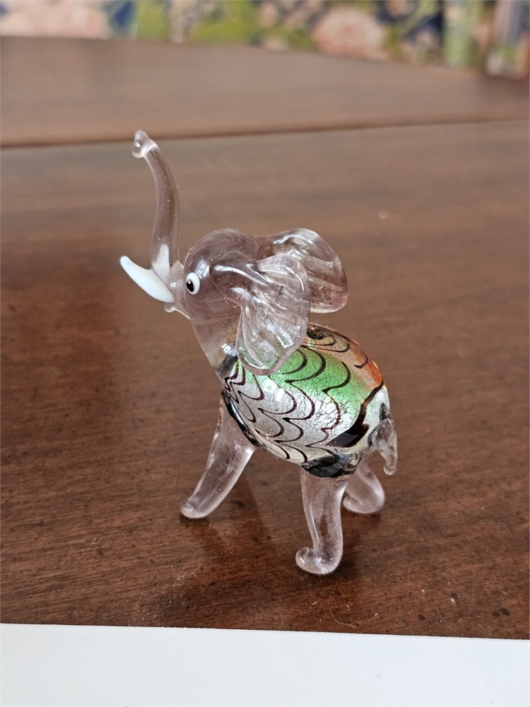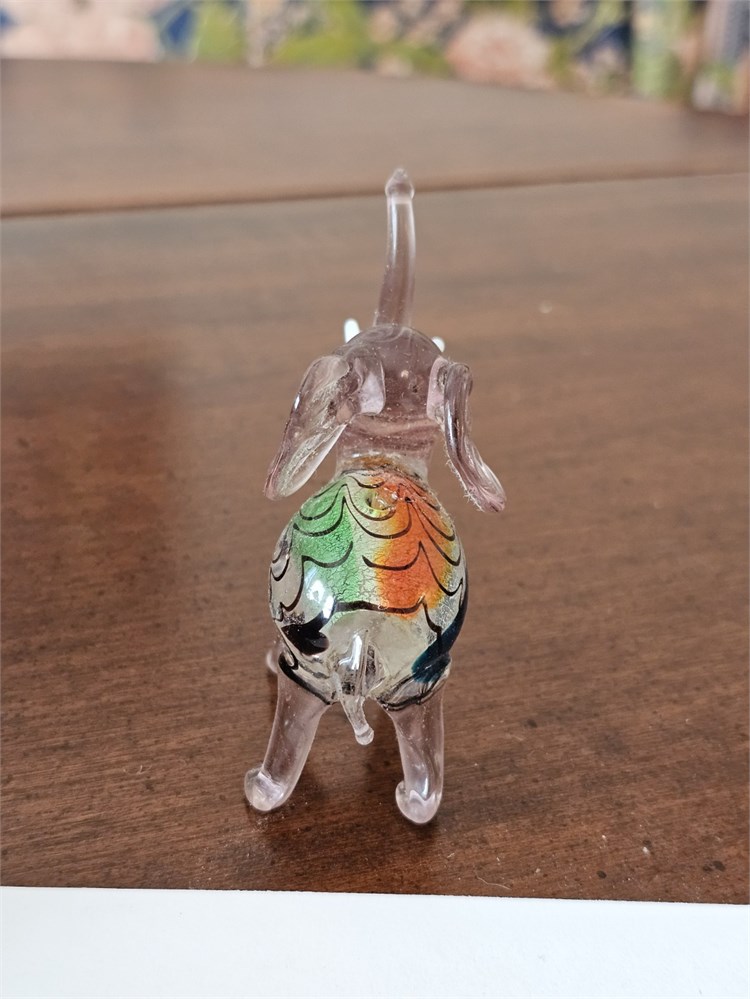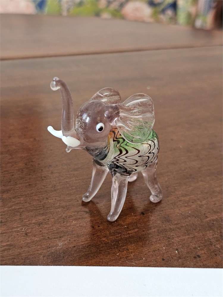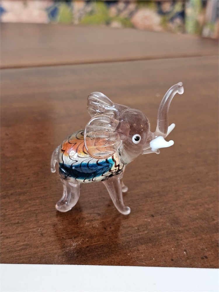 Art Glass Elephant Figurine – Murano Glass Style, Multi-Color – 3"H View Watchlist >
