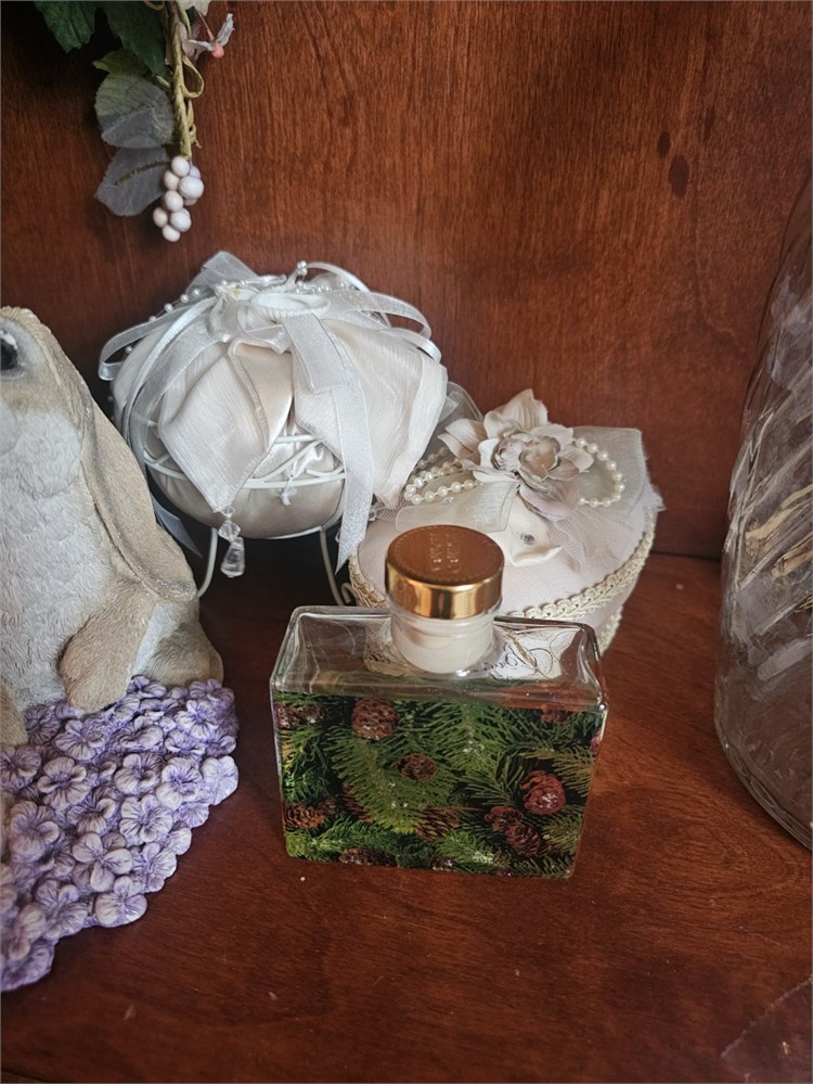 Mixed Home Decor – Faux Flowers, Candles, Easter Bunny Figurine, and More