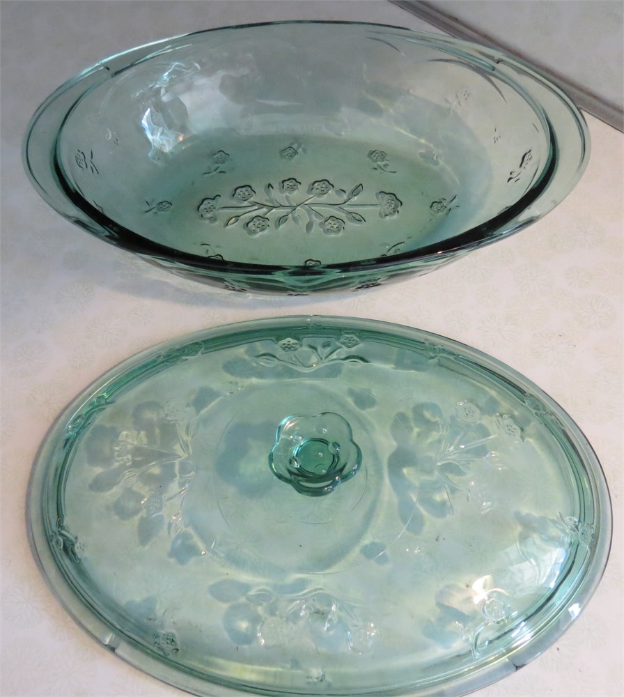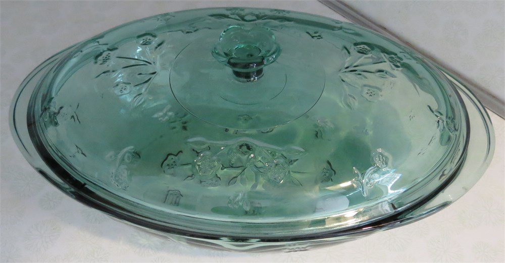 Vintage Libby Orchard Fruit Green Glass Covered Casserole Dish View Watchlist >
