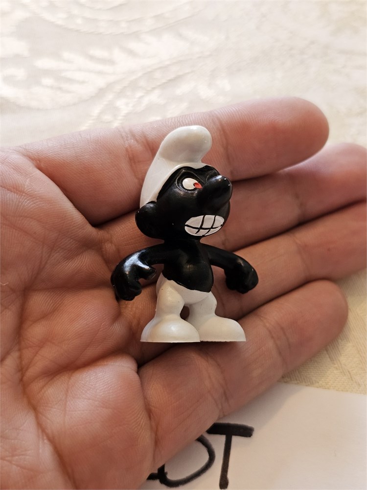 Vintage "Angry Smurf" Peyo Figurine - Features Black PVC Body, Portugal - White View Watchlist >