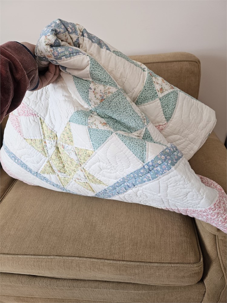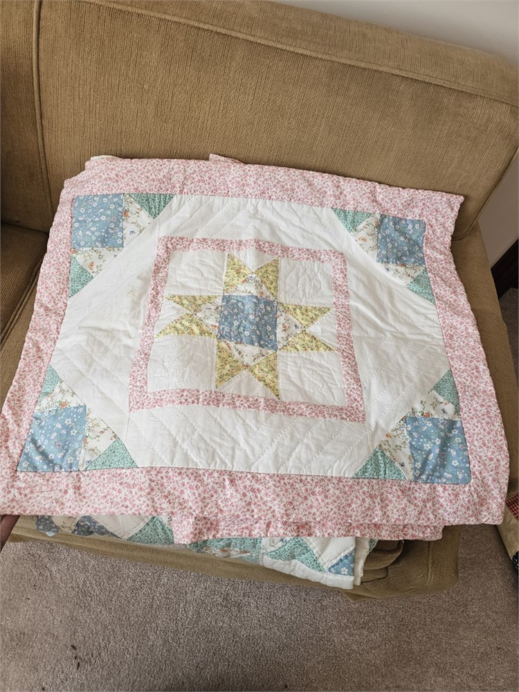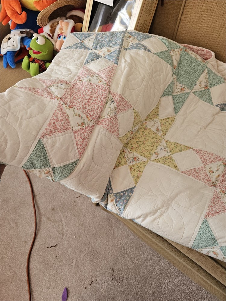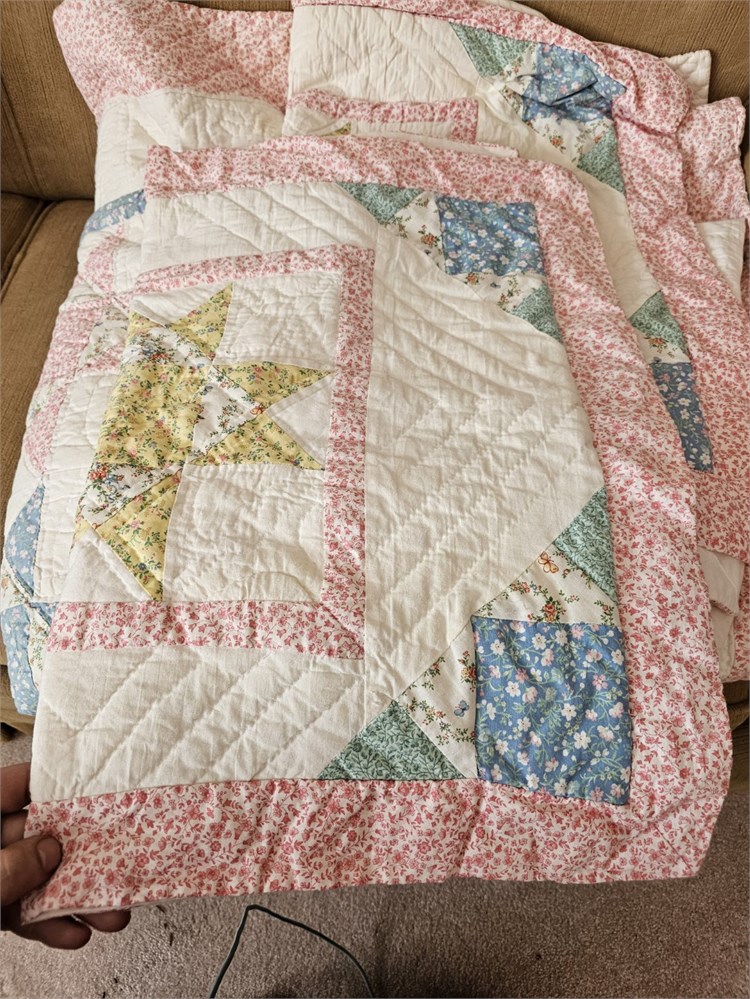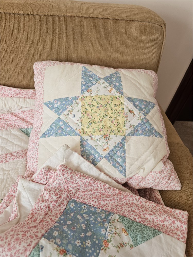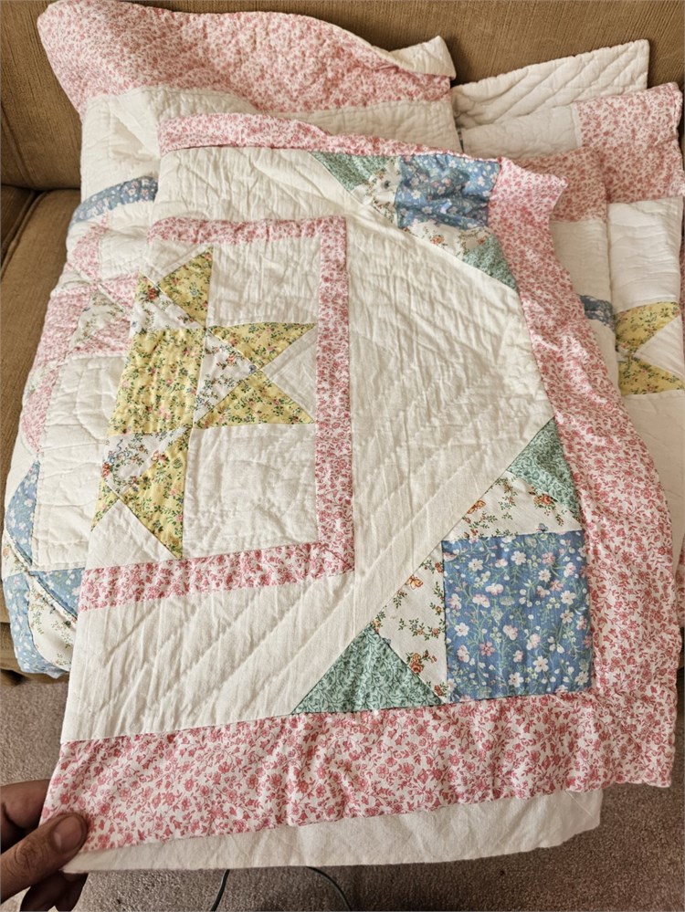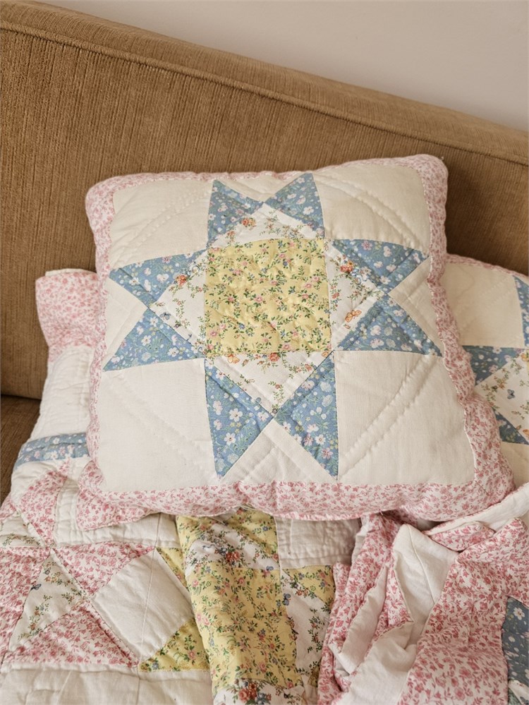 Arch Associates Matching Queen Quilt, Pillows & Wall Hanging - Pastel Spring Colors Star Pattern