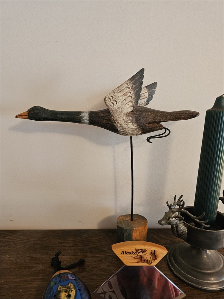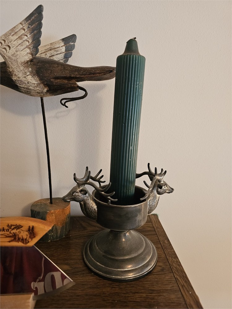 Mixed Home Decorative Cabin/Outdoor Lot - Metal Stag Candle Holder, Carved Wood Mallard, HP Ocarina Whistle & More
