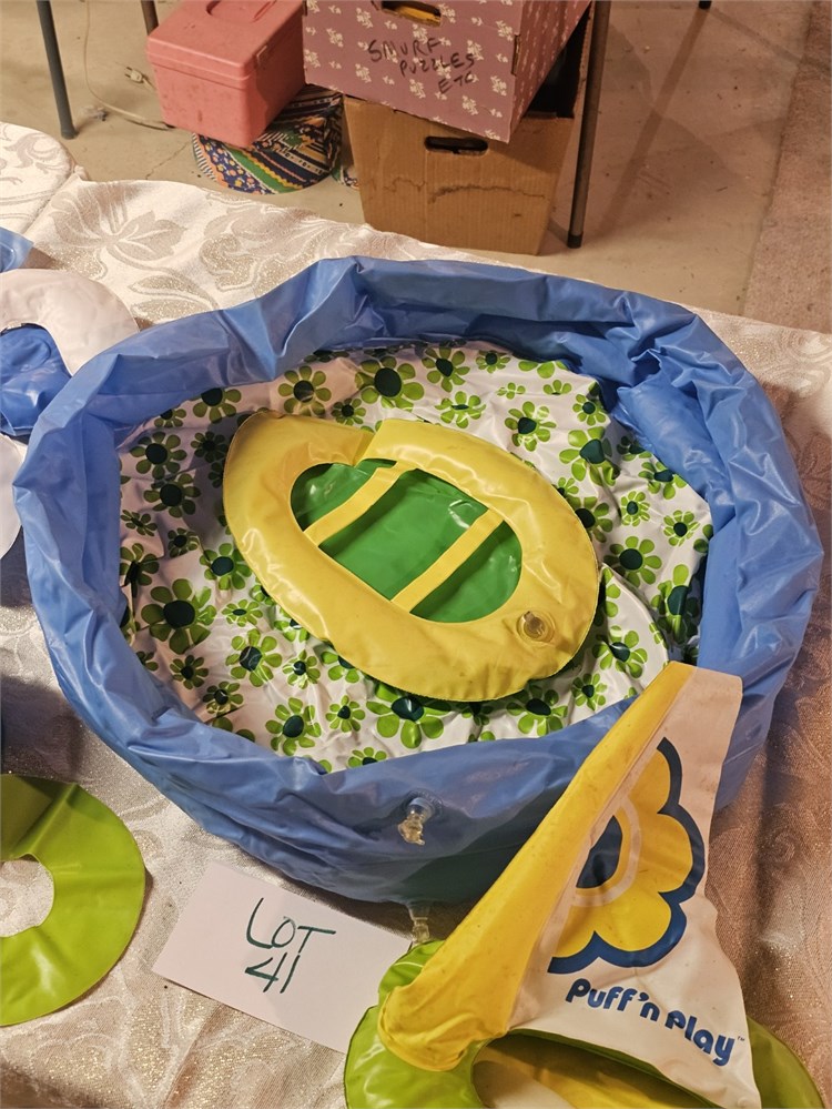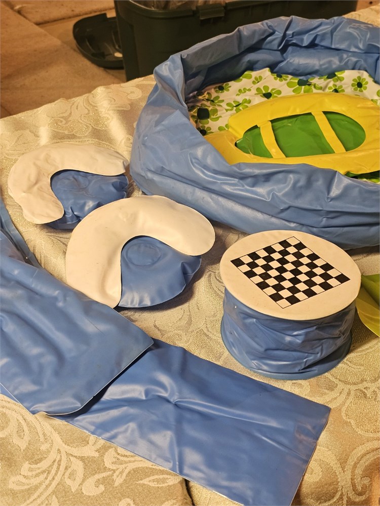 Vintage 1970's Puff' N Play Barbie Size Inflatable Doll House Furniture Pool & Floats