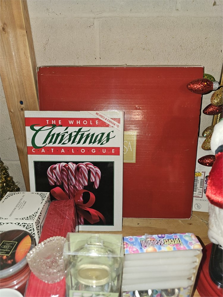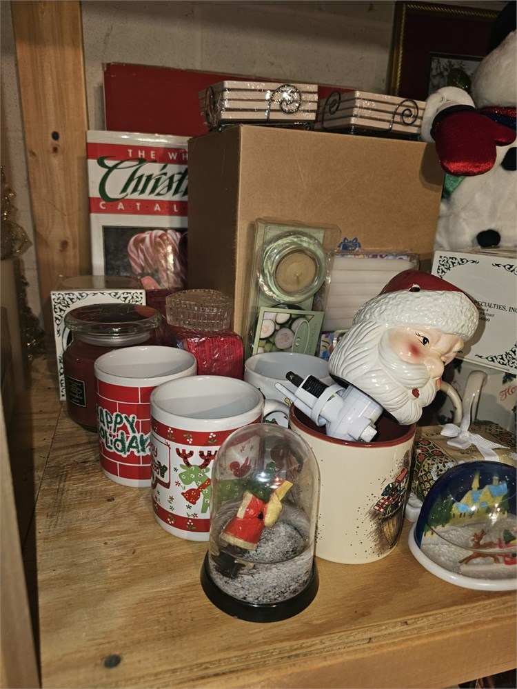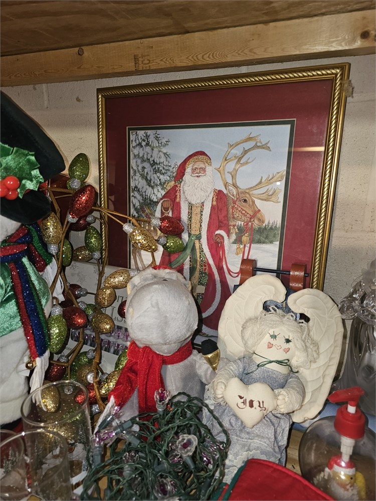 Christmas Shelf Cleanout- Wonderful Mixture Of Mixed Christmas Decor- Lot Includes But Not Limited Too: Santas, Faux Floral, Ornament, Plush, Figures, Lights & Much More