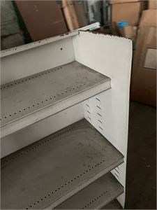 Wood Framed Mirror & 4 Tier Metal Shelving Unit W/Faux Wood Grain Sides View Watchlist >