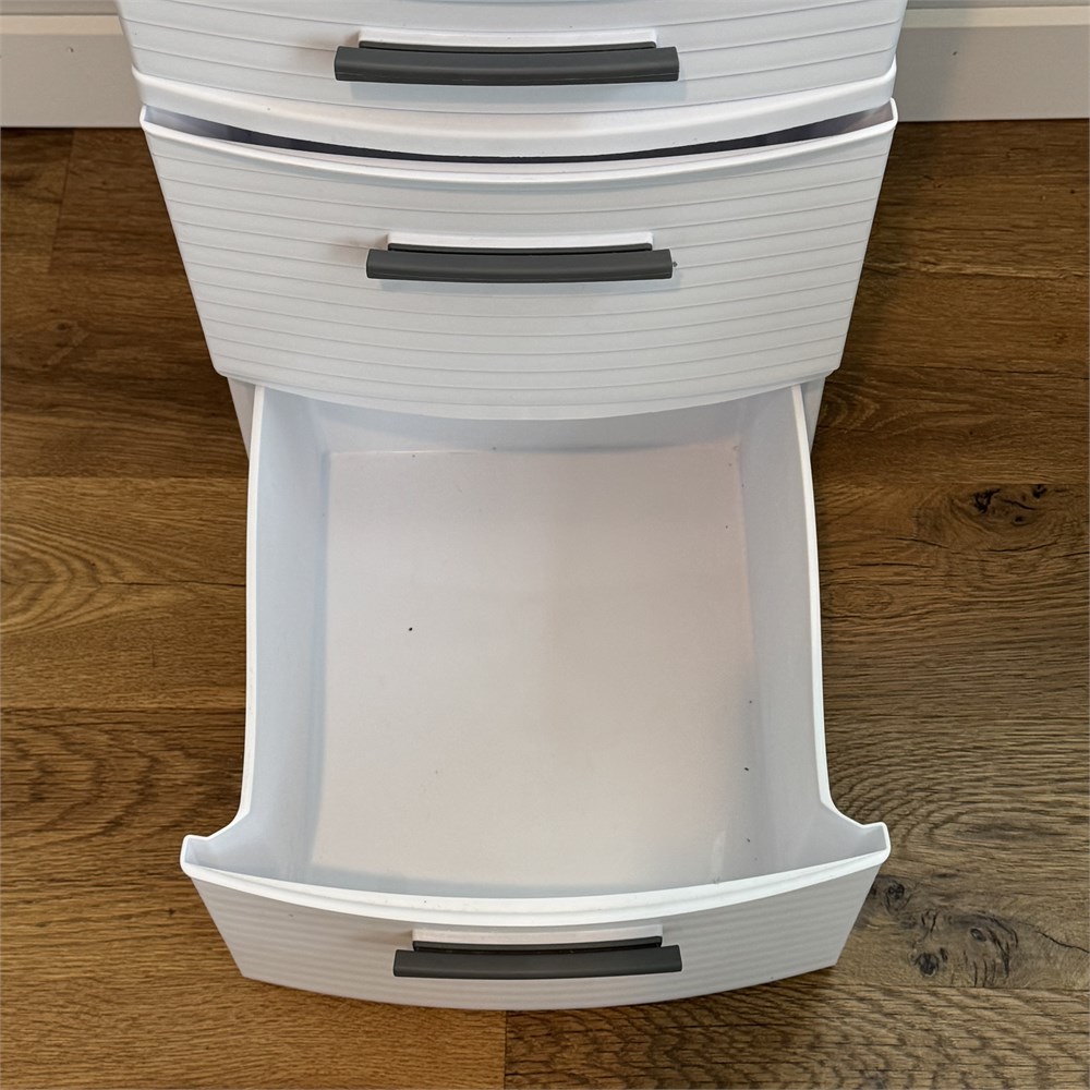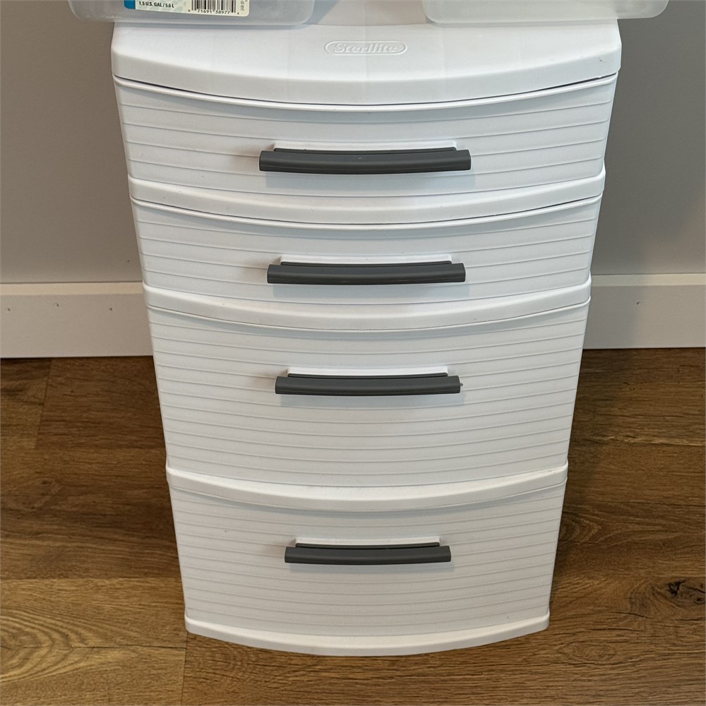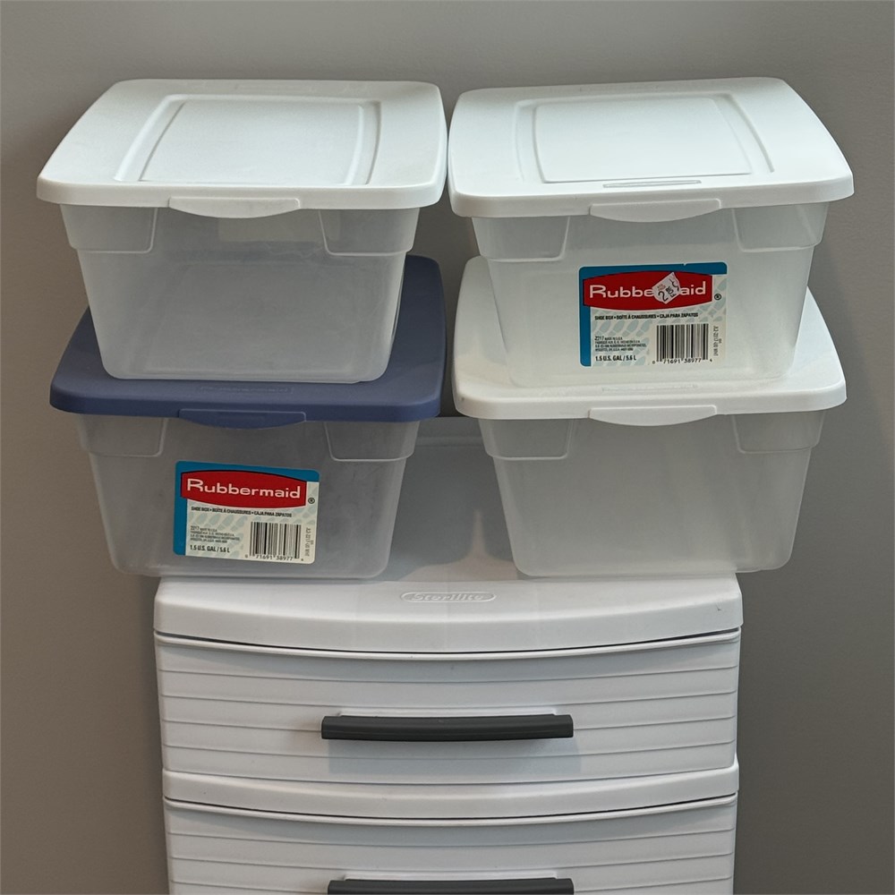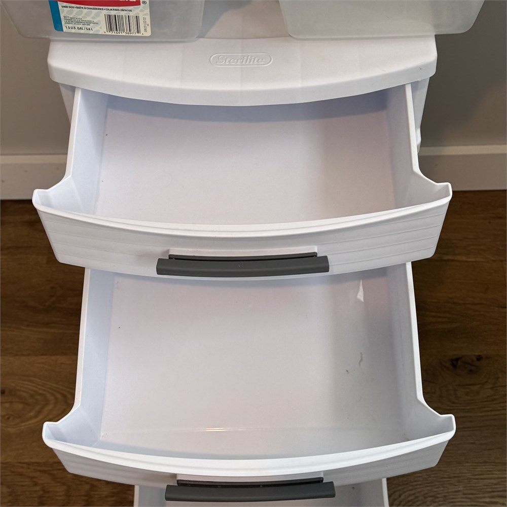 Sterilite Drawer Storage and Rubbermaid 1 Gallon Containers