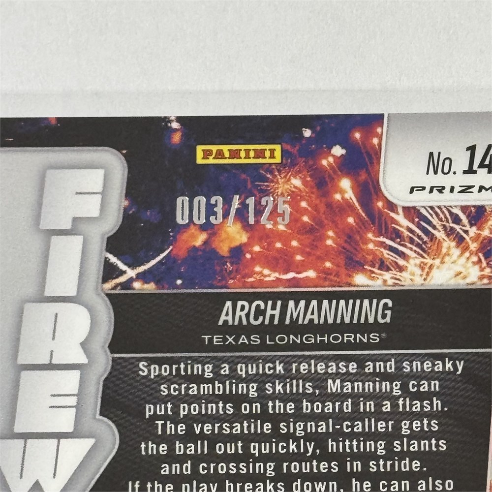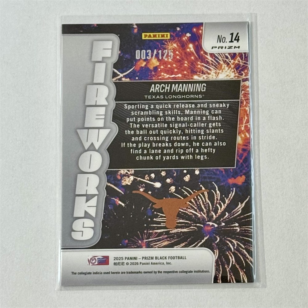 Arch Manning - 2025 Panini Prizm Black Fireworks Blue Ice Football Card 003/125 View Watchlist >