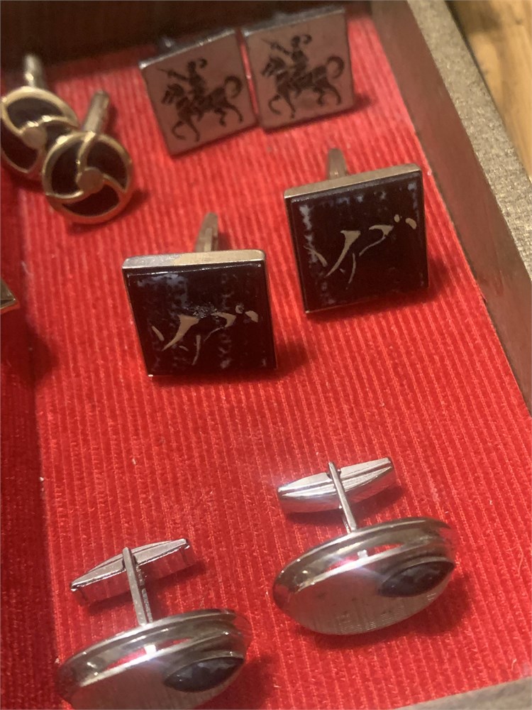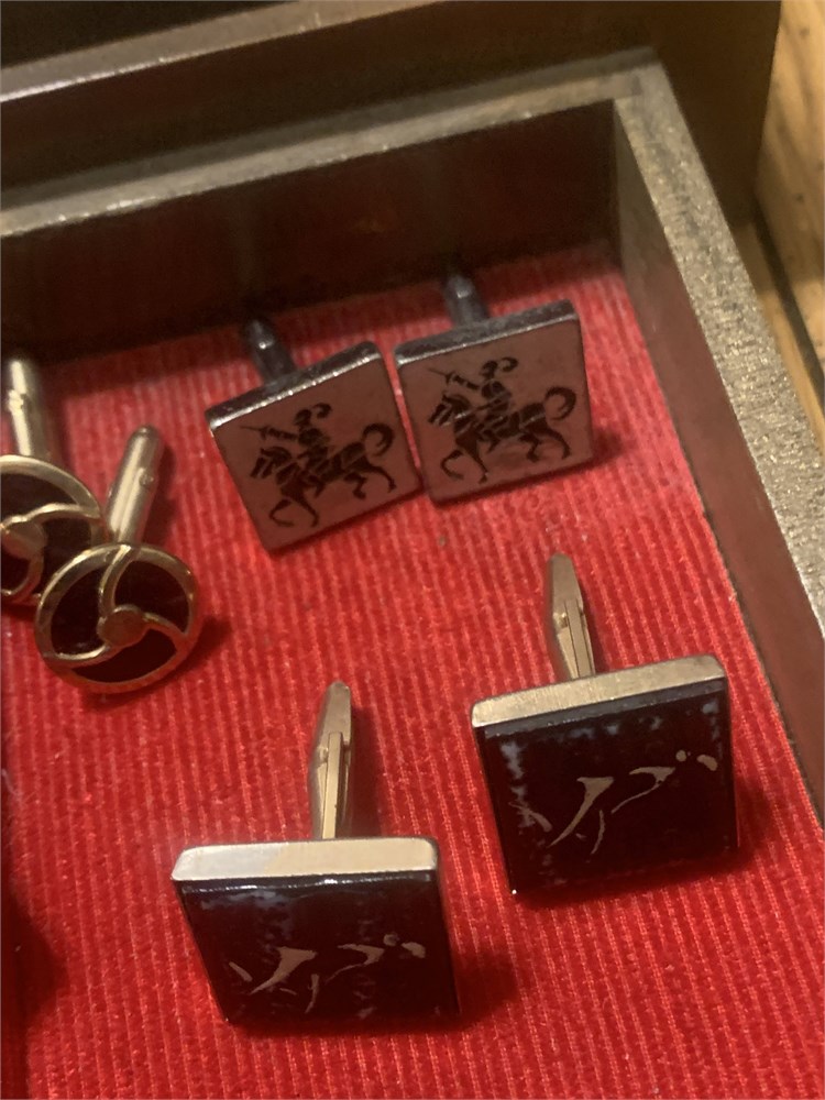 Cufflink Lot Black Enamel Siamese Niello, Swedish EF Pewter , Jousting Horse View Watchlist >