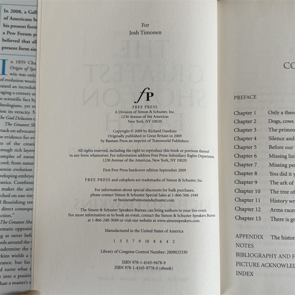 1st Ed/1st Print - The Greatest Show on Earth - Richard Dawkins (HC, DJ) View Watchlist >