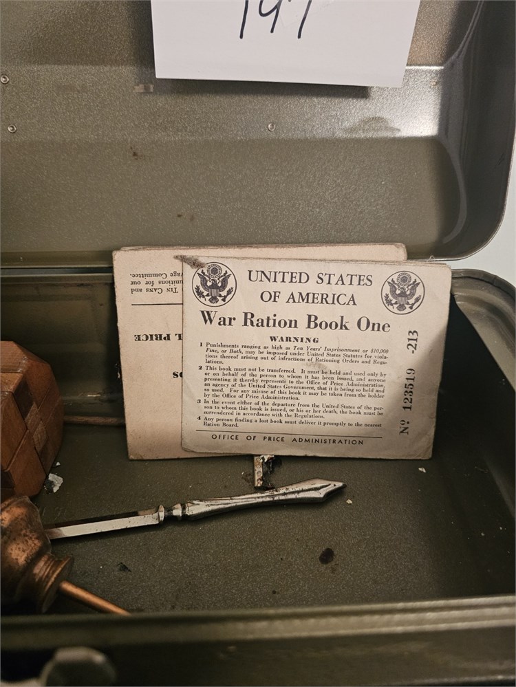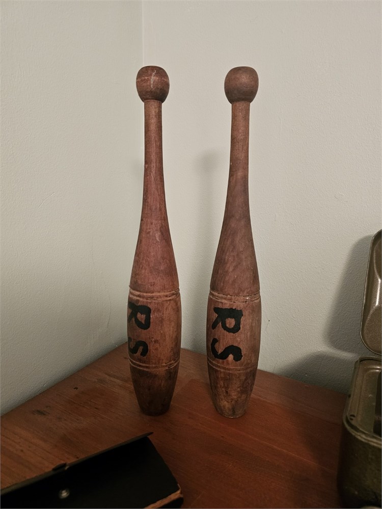 Misc Lot- Antique Wood Juggling Pins, Rations Book, Harmonica, Drafting Tools & View Watchlist >