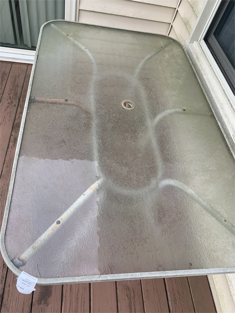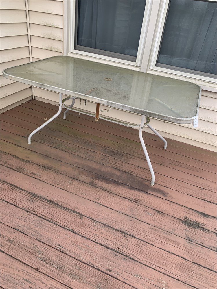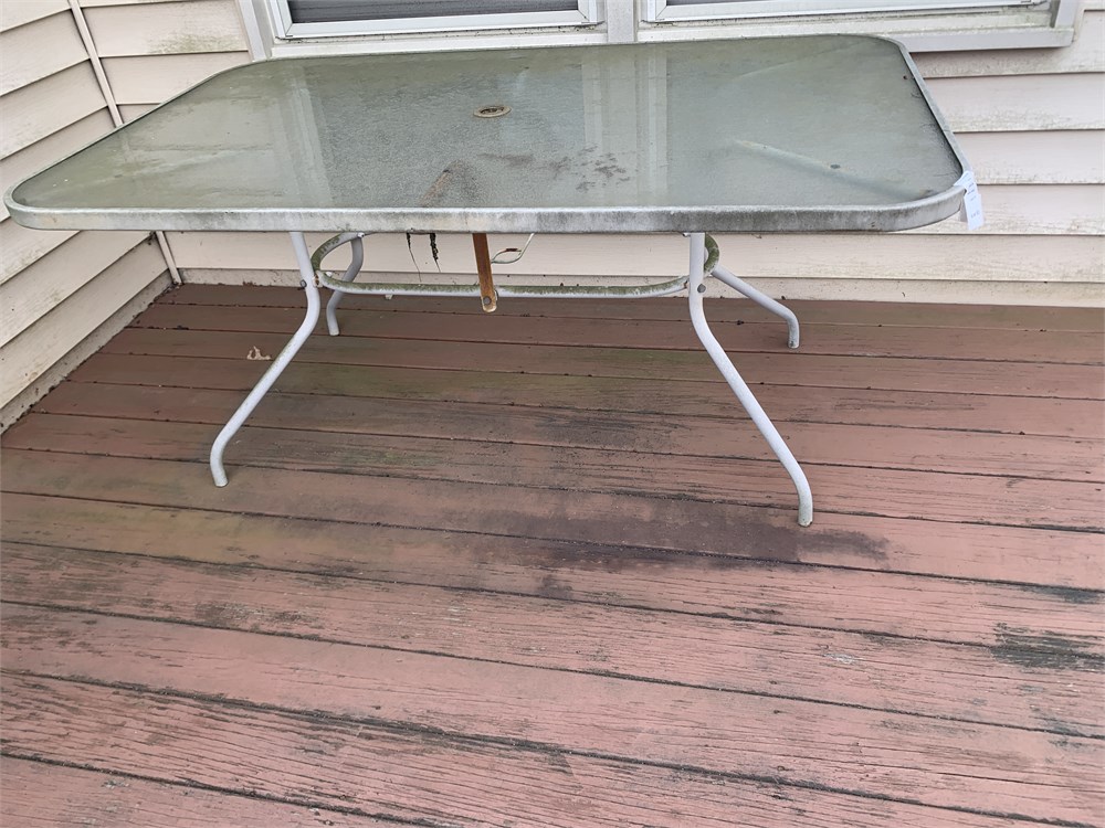 Rectangular Outdoor Patio Table W/Tempered Glass Top & Umbrella Hole View Watchlist >