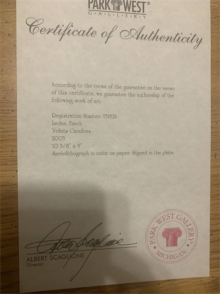 LE Seriolithograph Volets Caraibes By Francois Fanch Ledan Park West Gallery View Watchlist >