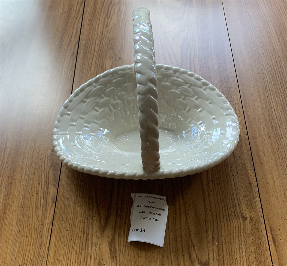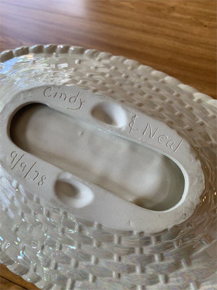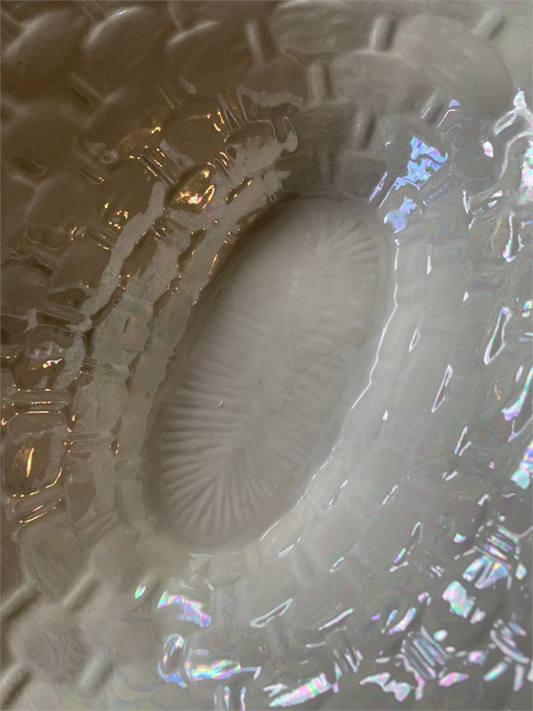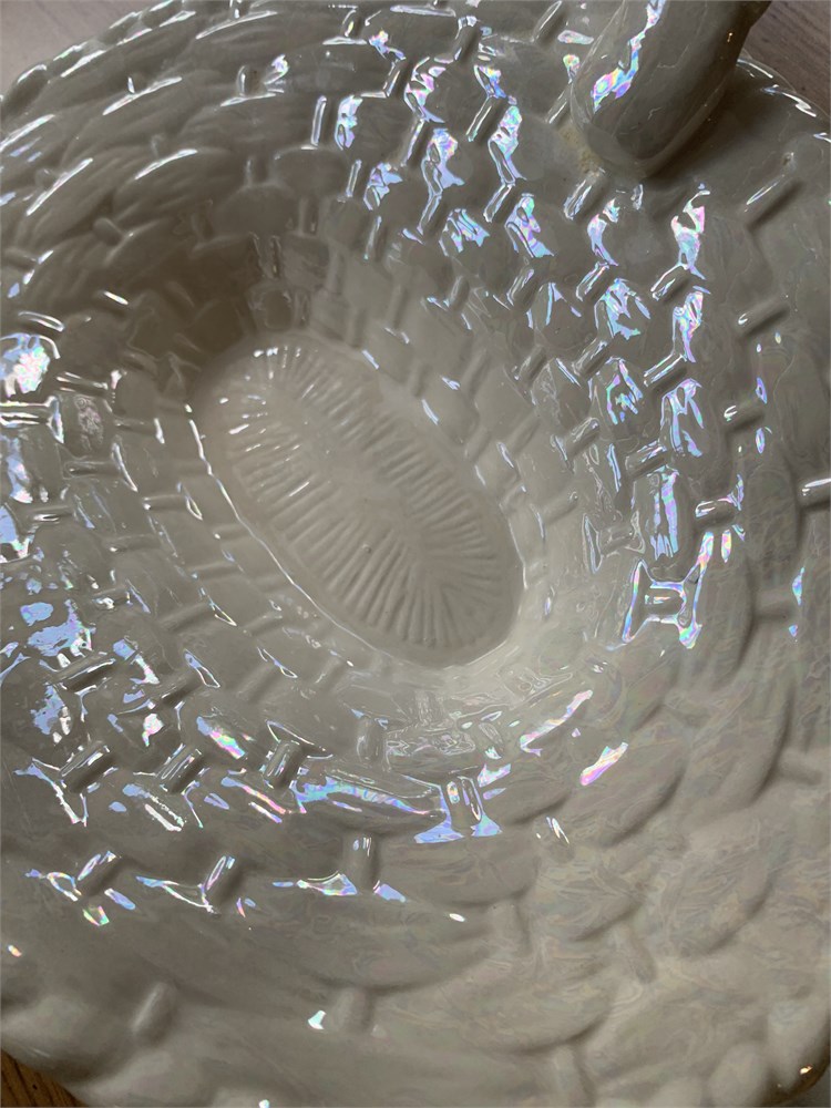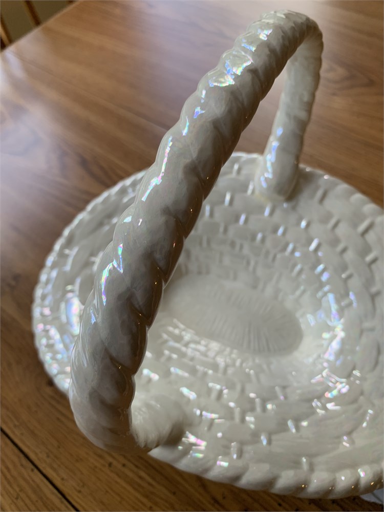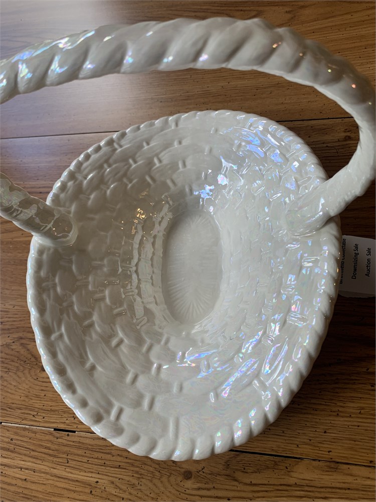 Atlantic Mold White Iridescent Ceramic Tray Basket W/Woven Pattern & Handle View Watchlist >